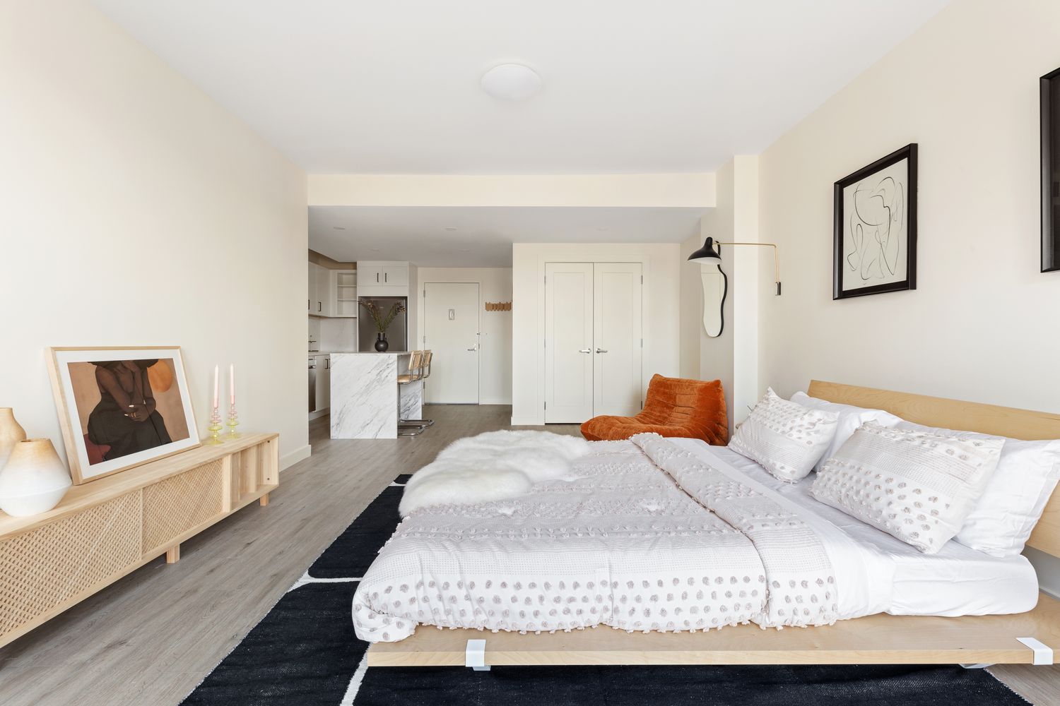 Welcome to The Concourse, where our beautifully designed Studio apartments blend modern elegance with everyday functionality. Enjoy high ceilings, expansive windows that bathe your home in natural light, and an open-concept kitchen equipped for both style and convenience. Each residence is thoughtfully appointed with an in-unit washer and dryer, ensuring ultimate ease, while select units feature private outdoor spaces—your personal retreat with stunning city views.