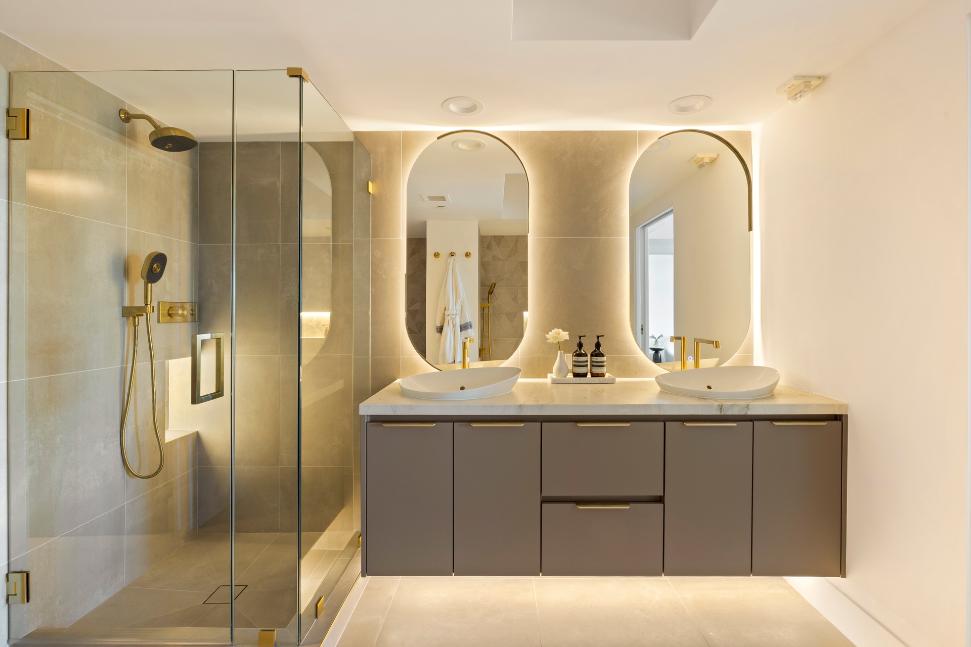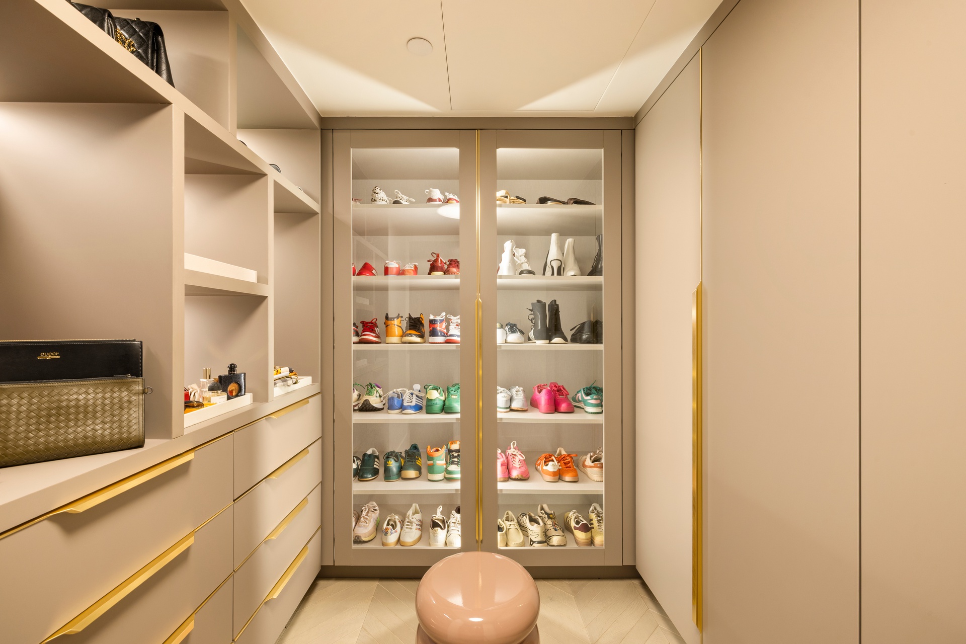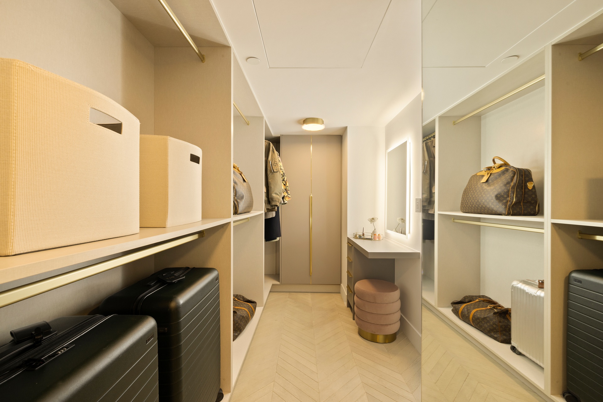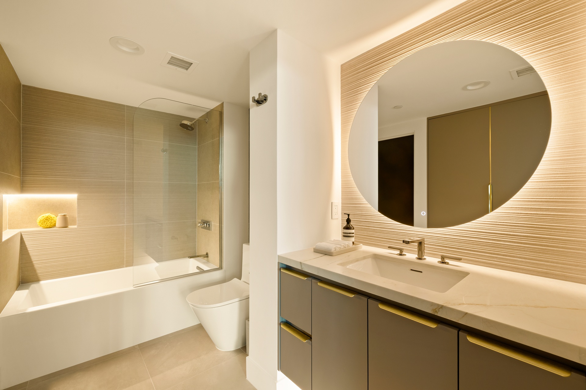 Impeccably designed and perched on the tenth floor of the exclusive Azzurra, this 2-bedroom, 2.5-bath residence showcases breathtaking views of the Marina and Santa Monica Mountains from every room. The interiors are defined by chevron Zanzibar European oak flooring, custom Liquid Metal doors with bespoke pulls, and curated finishes throughout. Luxe Phillip Jeffries wallcoverings in silk, linen, and vinyl snakeskin add depth and texture, while Lutron electronic shades and outlets provide effortless modern convenience. The sleek kitchen is outfitted with Dacor luxury appliances and a custom microwave drawer oven, flowing seamlessly into a spacious dining area highlighted by a custom alabaster and leather chandelier, a built-in bar, and an integrated Miele wine cooler - perfect for entertaining. The sun-filled living room features custom built-ins, an electric fireplace, and statement lighting, with glass doors opening to a private balcony for a seamless indoor-outdoor experience. A refined powder room completes the main living spaces. The serene primary suite offers space for a dedicated office nook overlooking the views and a hotel-style en-suite bath with a dual-sink vanity, glass-enclosed shower, soaking tub, and boutique-like closet. An equally sophisticated guest suite, in-unit laundry, and meticulous attention to detail throughout complete the home. Residents of Azzurra enjoy full-service, hotel-style living with 24/7 concierge, a resort-style pool and spa, a state-of-the-art indoor/outdoor fitness center, and an exceptional collection of amenities - all set in a premier Westside location.