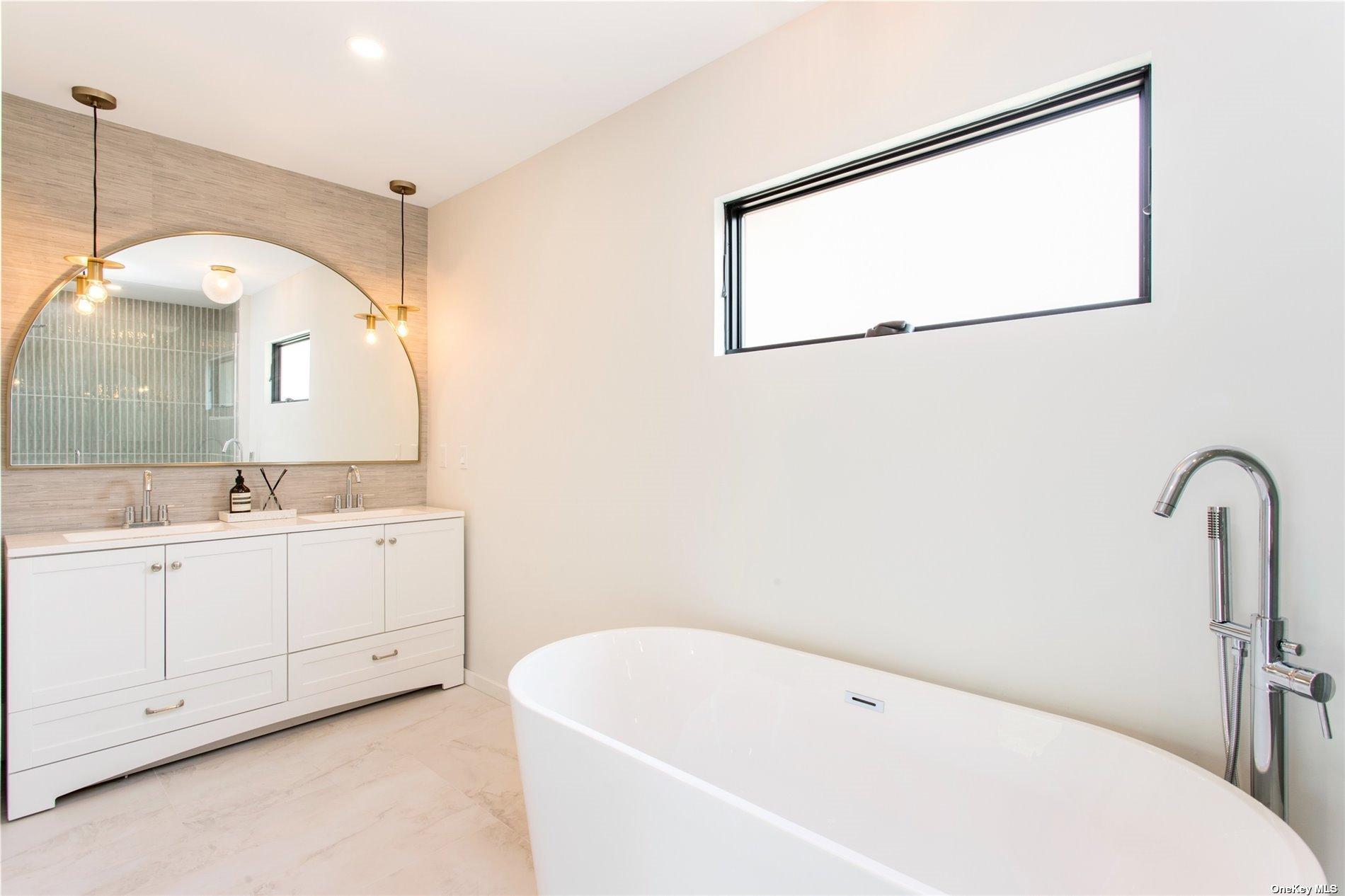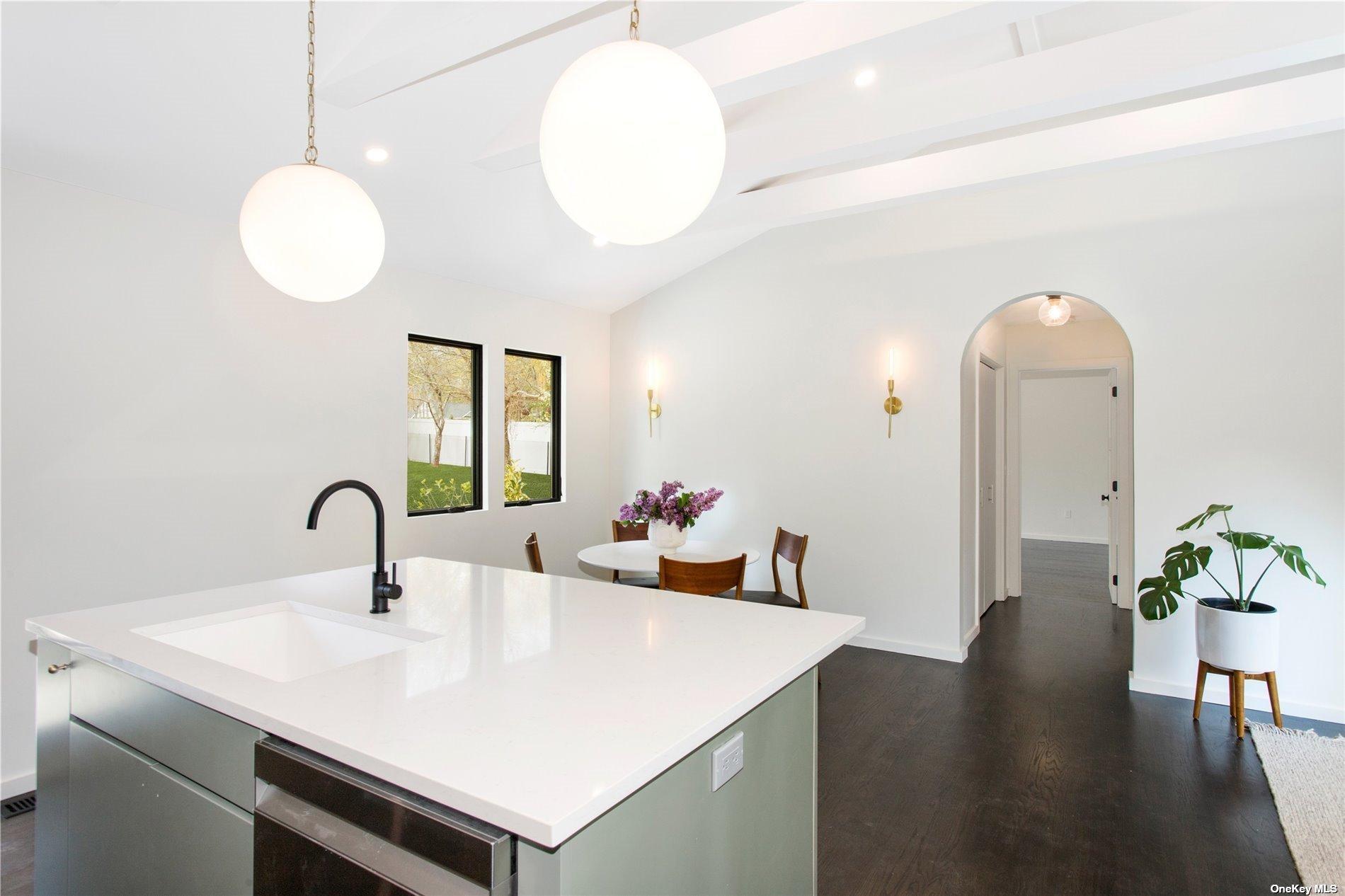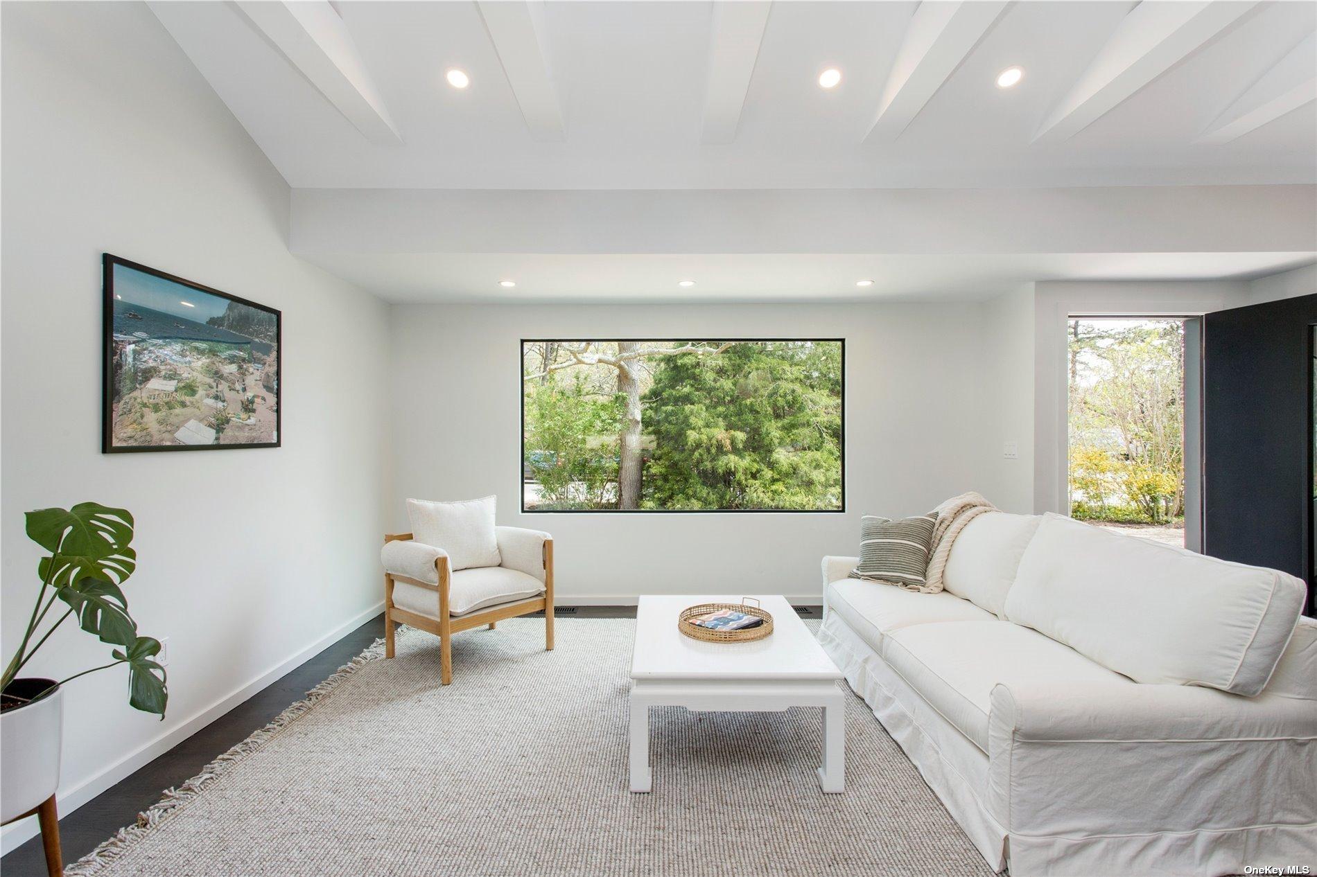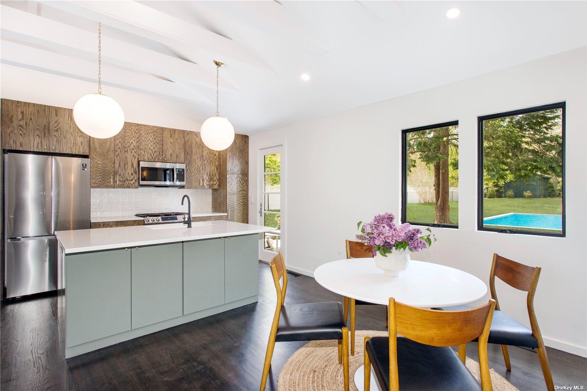 This design forward newly renovated ranch is ready for summer entertaining! New everything - electric, plumbing, roof, septic, HVAC and more. Huge backyard with a brand new in ground pool and irrigation system. Entertaining patio off the kitchen and bluestone patio off the master suite. The master suite features a fully built out walk-in closet and a luxurious bathroom complete with soaking tub. This thoughtful renovation included extensive insulation solutions for a quiet and energy efficient home. Custom kitchen cabinetry, quartz countertops, all new appliances, designer finishes, handmade tile, and fully outfitted closets throughout. A must see!