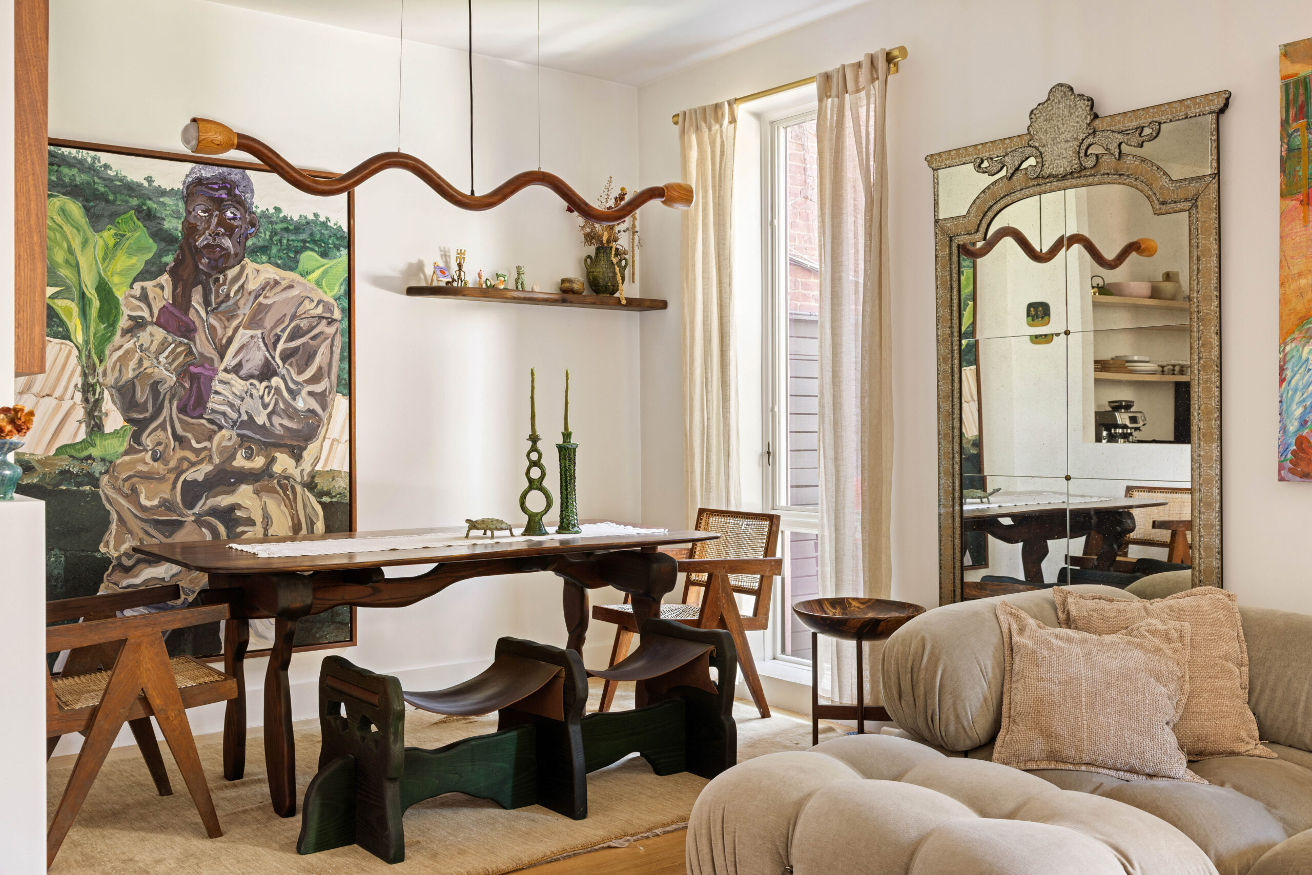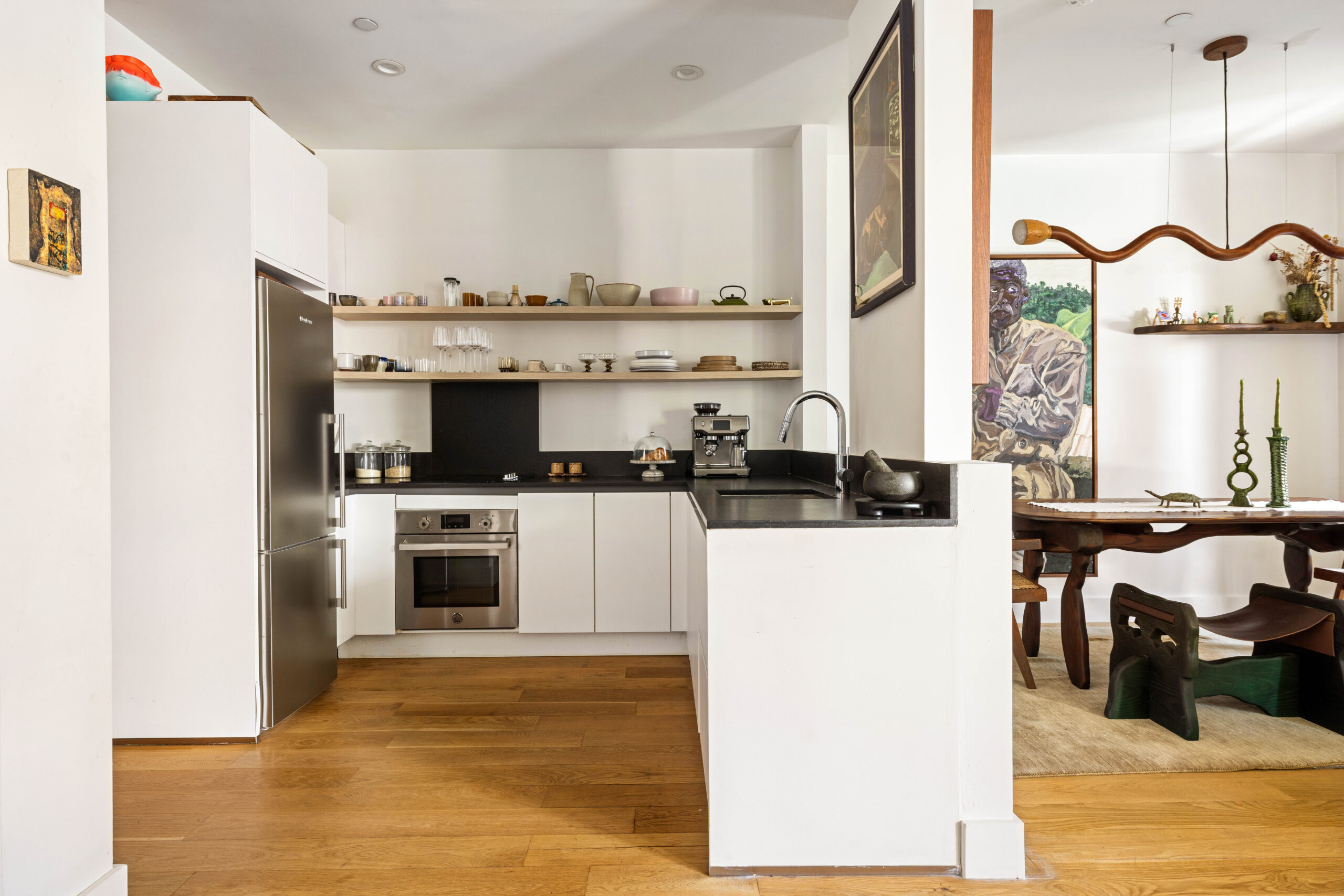 Thoughtfully designed with a creative soul, this contemporary Bushwick duplex is defined by its expansive private yard and a seamless, artistic indoor-outdoor connection. Upon entry, a spacious, open living room is framed by oversized, floor-to-ceiling windows with northern exposure and direct views to the expansive private garden, creating a bright and inviting atmosphere. The living area flows naturally into a dedicated dining space, while a third bedroom can be easily reintroduced on this level by rebuilding the original wall.