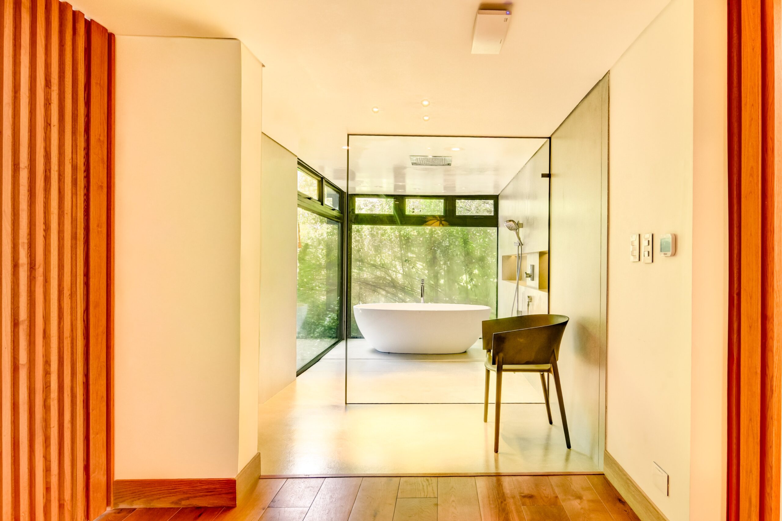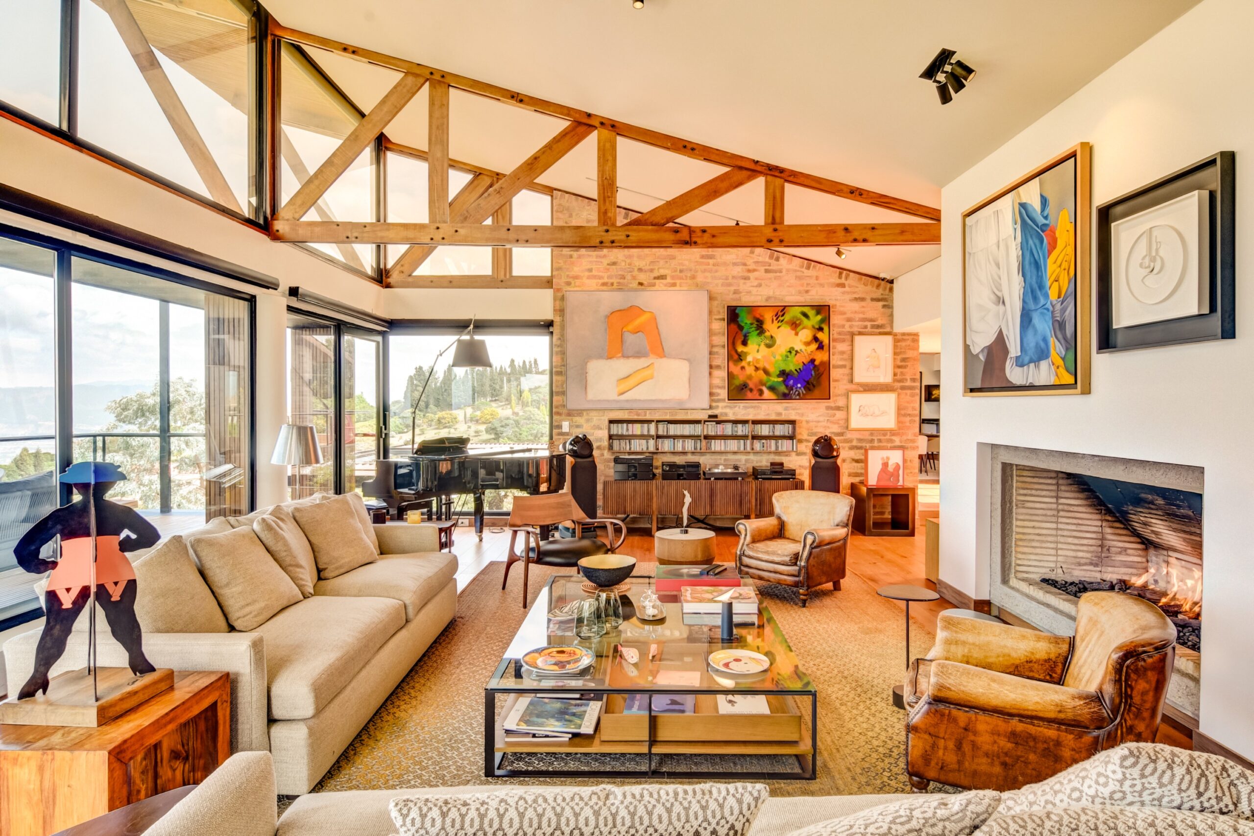 Set on an expansive approximately 3.68-acre lot (14,900 m²) with nearly 9,700 square feet (900 m²) of thoughtfully designed living space, this architectural residence is a masterclass in refined indoor-outdoor living. Warm, sophisticated finishes are complemented by floor-to-ceiling German thermo-acoustic windows that flood the interiors with natural light while seamlessly framing the surrounding landscape. Radiant floor heating and curated Delta Light illumination enhance both comfort and ambiance, while the home’s expansive social areas unfold effortlessly onto multiple terraces with captivating views, each anchored by fireplaces.