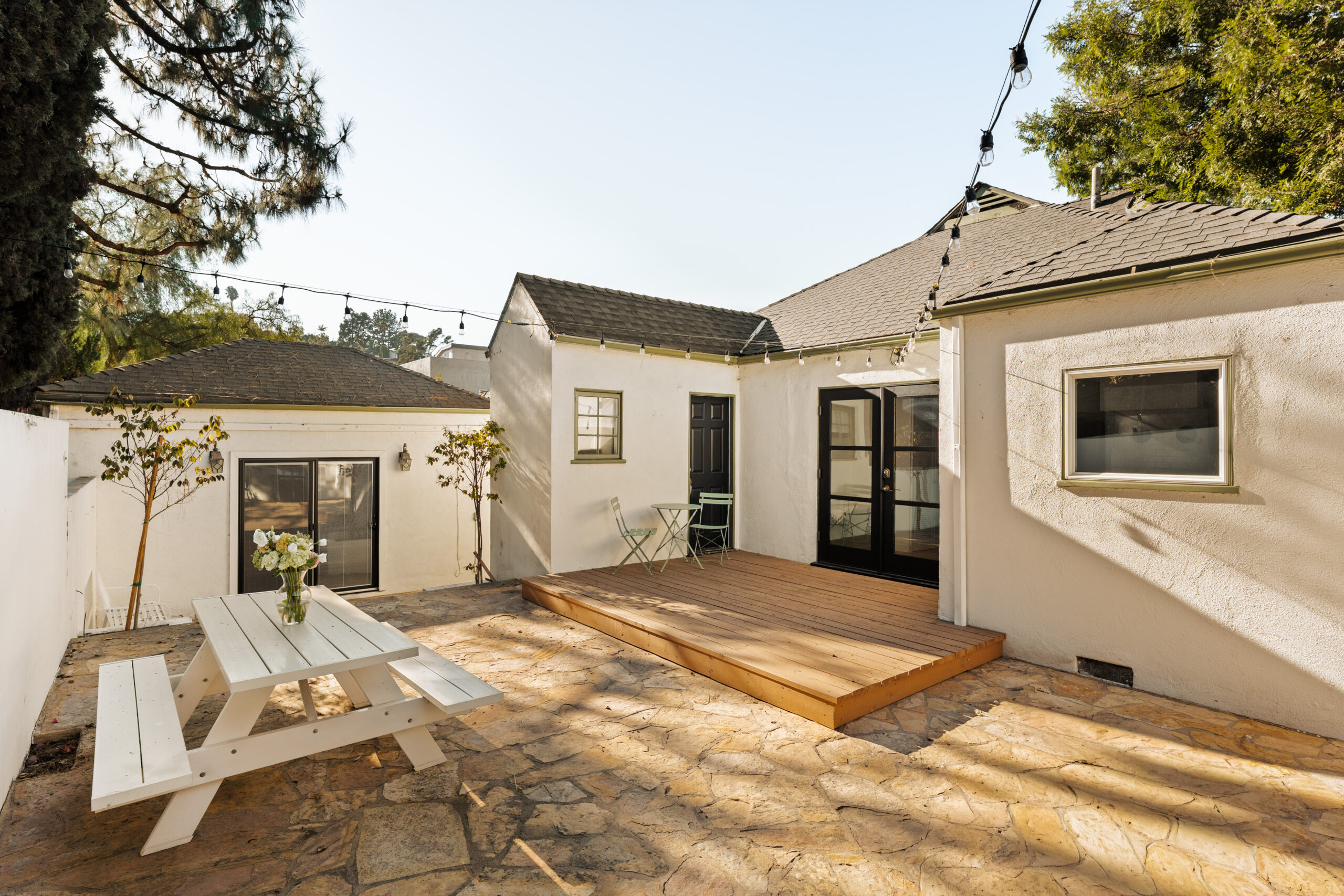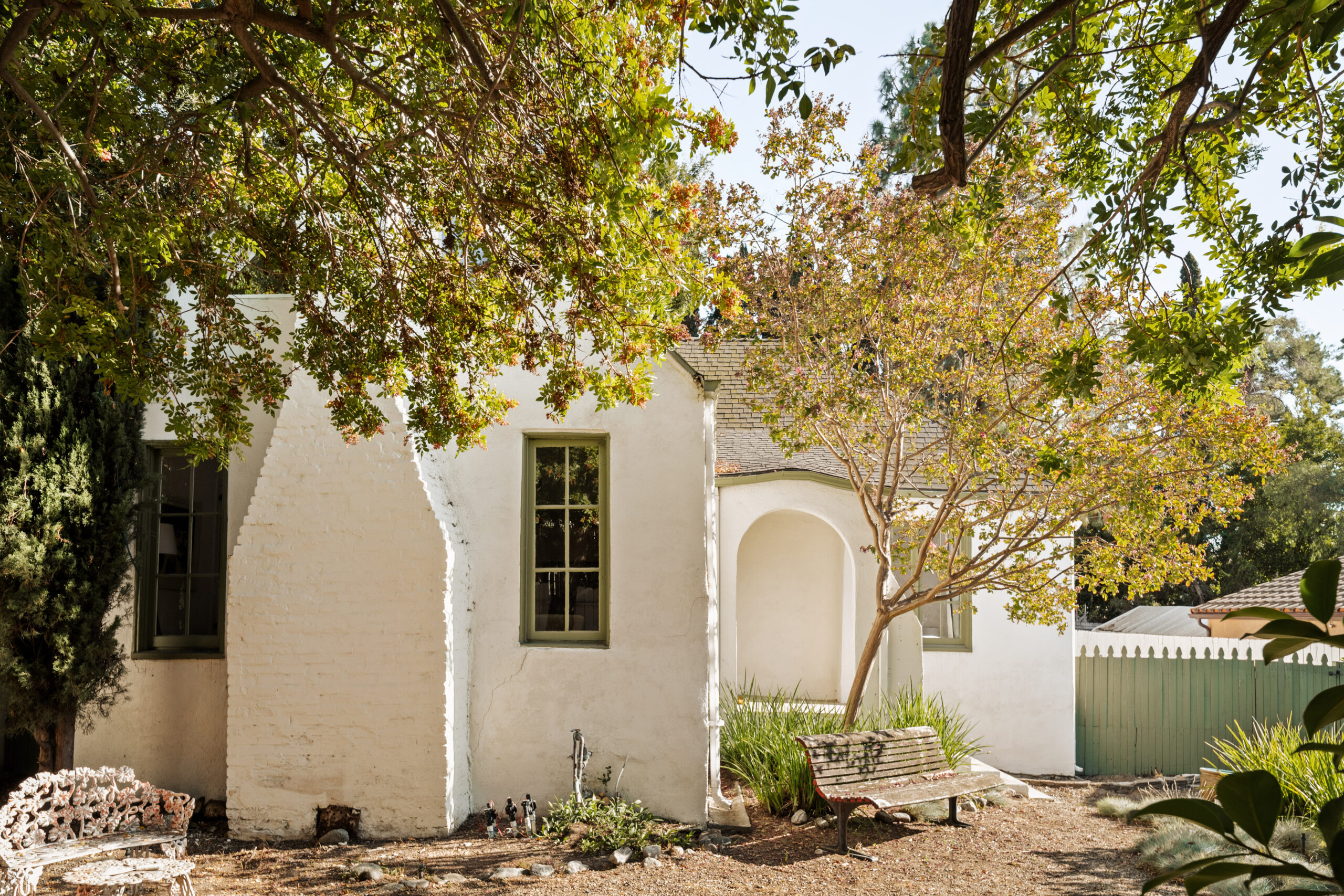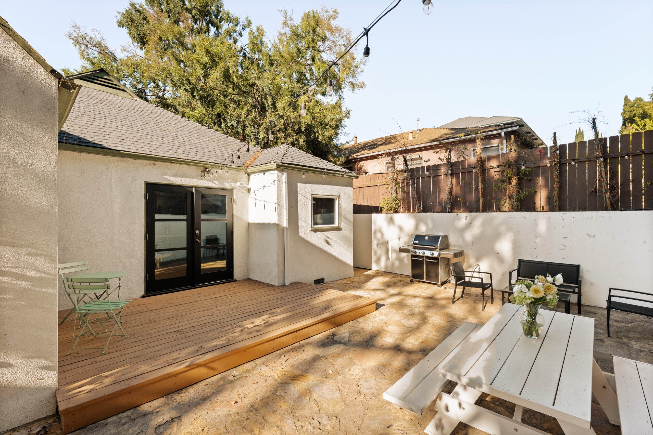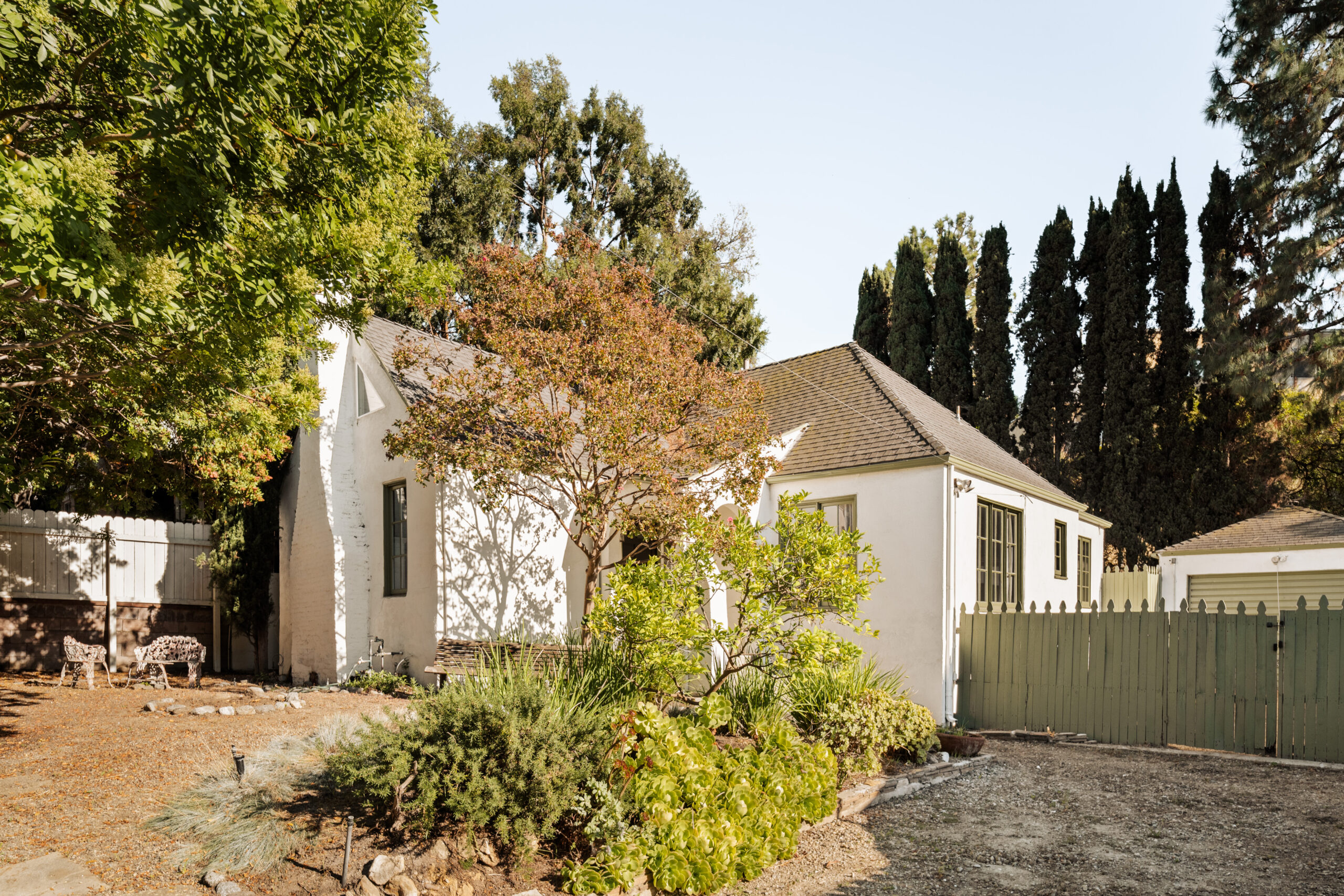 Welcome to 2272 India Street, a fully furnished lease opportunity in the heart of Silver Lake. This private Tudor-style retreat offers the perfect blend of 1920s charm and modern convenience, featuring a two-bedroom main house plus a converted garage - ideal as an office or creative studio. With a gated front yard and multiple outdoor seating areas, this tranquil oasis is just moments from Whole Foods and the reservoir, making it perfect for both relaxation and city living. Inside, you'll find cathedral ceilings in the main living area, complete with a decorative fireplace and built-in bookshelves that add warmth and character. The charming kitchen boasts new appliances, a center island, ample cabinetry, and a cozy breakfast nook. Outside, the spacious backyard patio is perfect for entertaining, adorned with Italian string lights and a barbecue setup, while the large side yard offers ample space for pets or gardening. With a spacious driveway and multiple outdoor living areas, 2272 India Street is a rare find offering charm, privacy, and prime location in one stunning package.