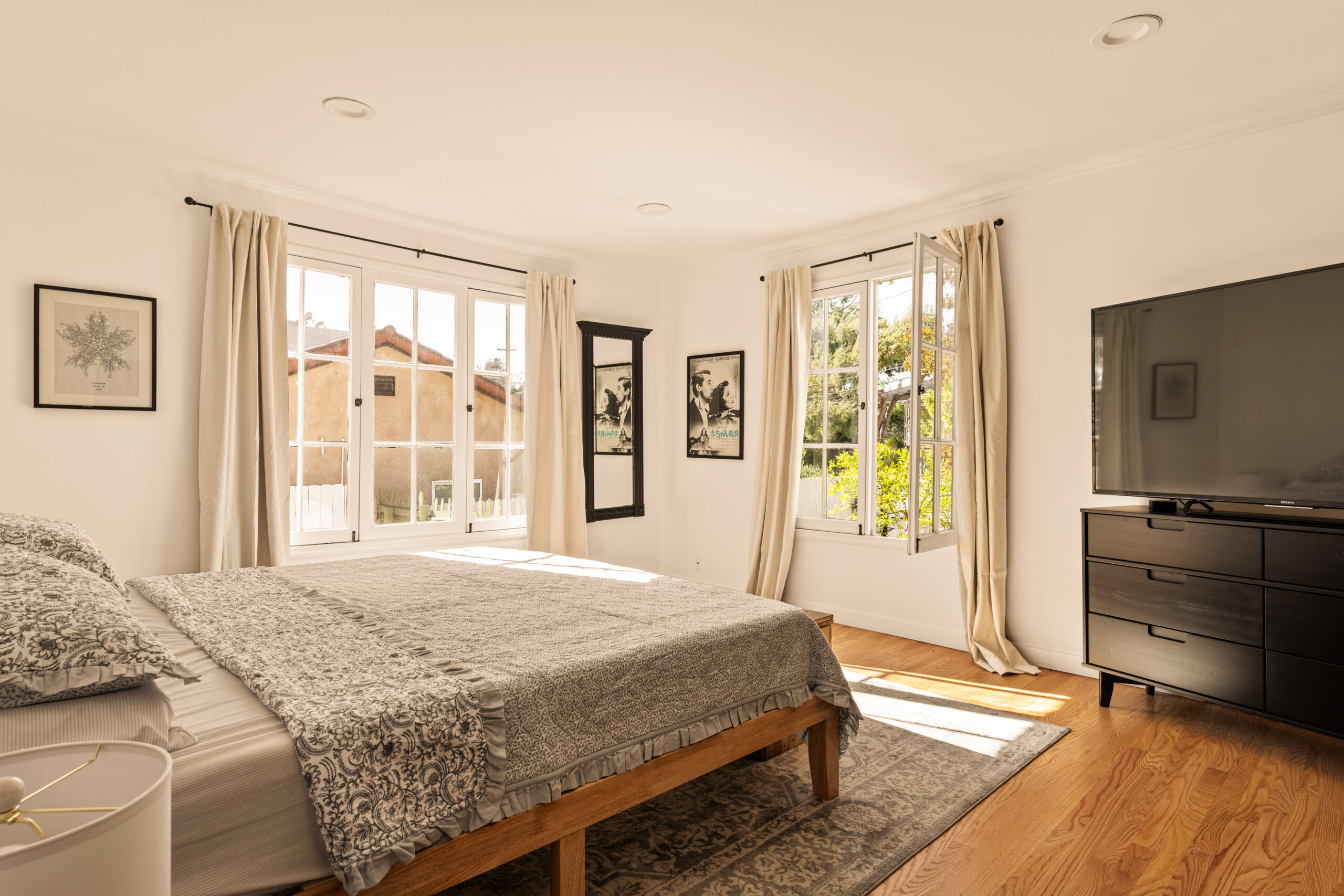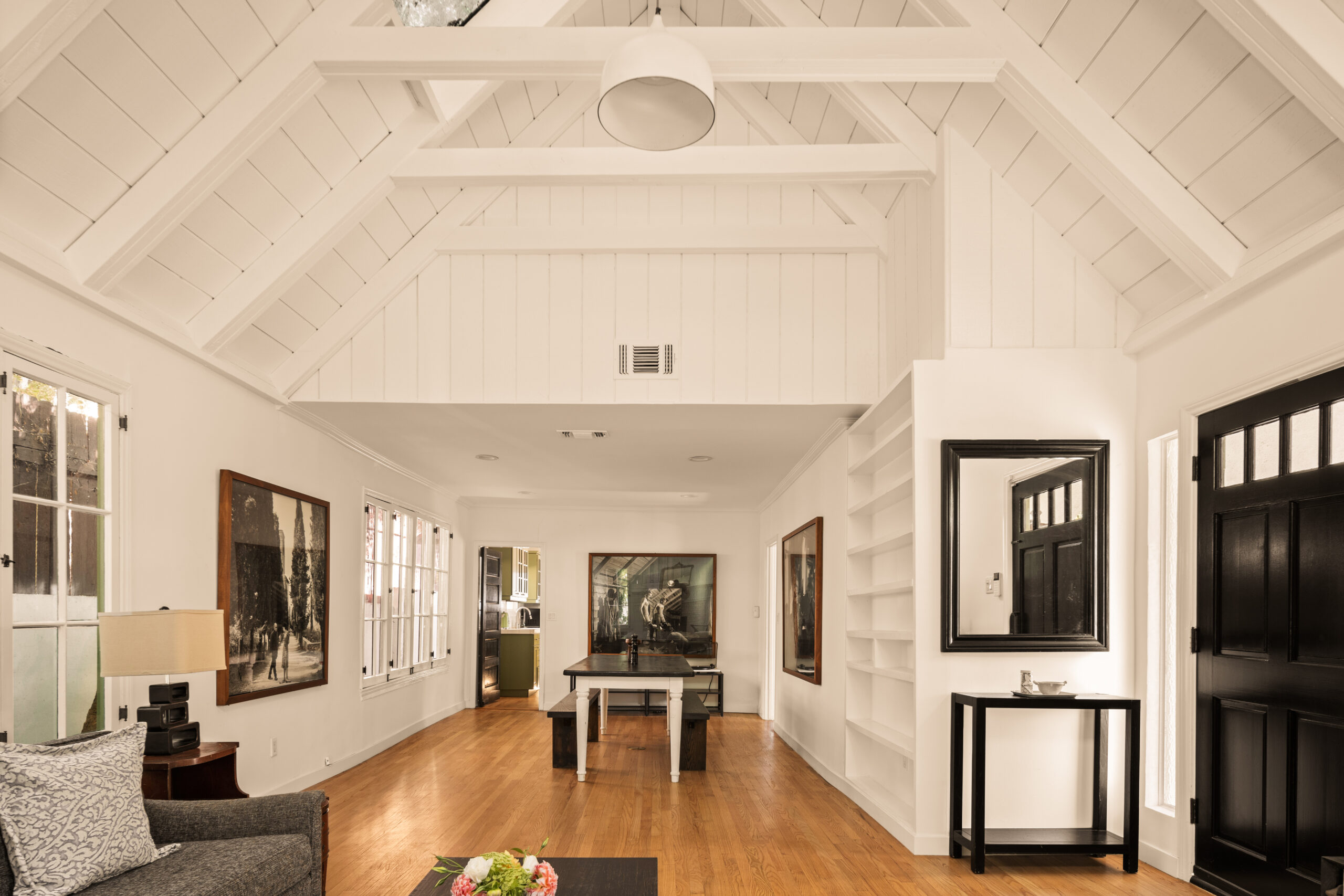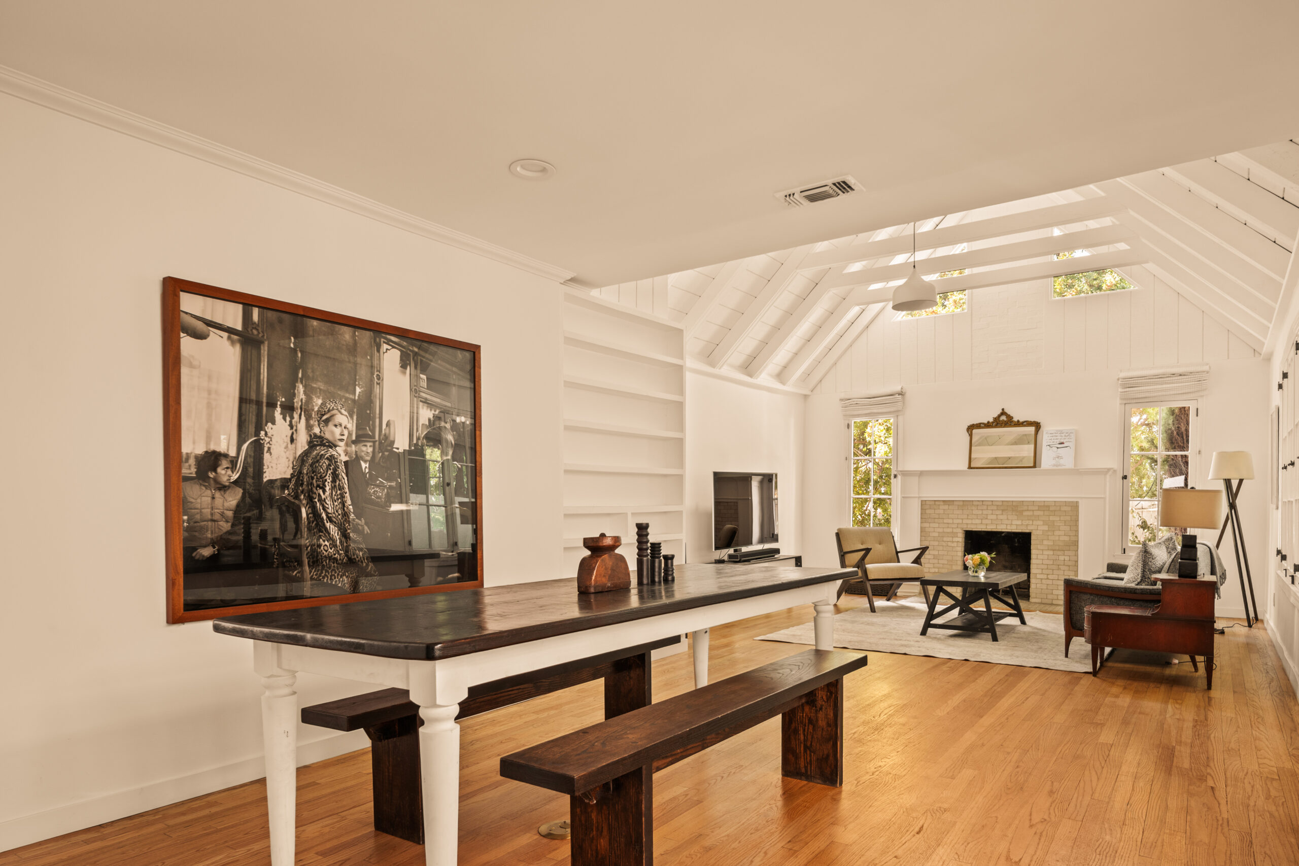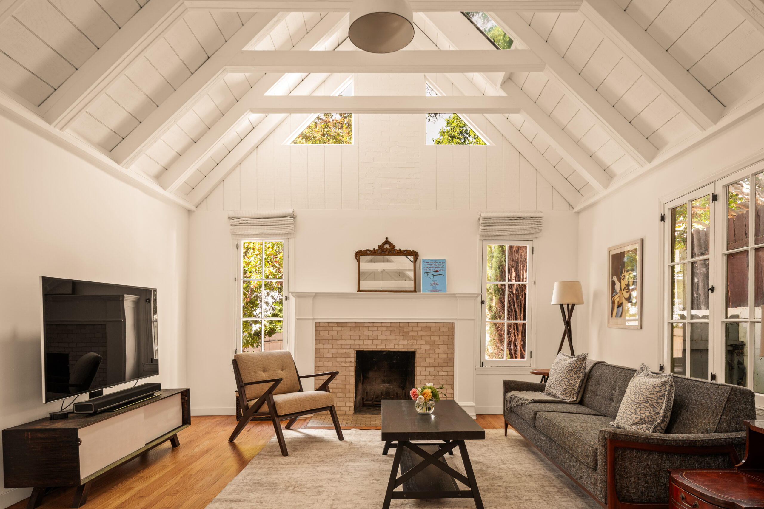 Welcome to 2272 India Street, a fully furnished lease opportunity in the heart of Silver Lake. This private Tudor-style retreat offers the perfect blend of 1920s charm and modern convenience, featuring a two-bedroom main house plus a converted garage - ideal as an office or creative studio. With a gated front yard and multiple outdoor seating areas, this tranquil oasis is just moments from Whole Foods and the reservoir, making it perfect for both relaxation and city living. Inside, you'll find cathedral ceilings in the main living area, complete with a decorative fireplace and built-in bookshelves that add warmth and character. The charming kitchen boasts new appliances, a center island, ample cabinetry, and a cozy breakfast nook. Outside, the spacious backyard patio is perfect for entertaining, adorned with Italian string lights and a barbecue setup, while the large side yard offers ample space for pets or gardening. With a spacious driveway and multiple outdoor living areas, 2272 India Street is a rare find offering charm, privacy, and prime location in one stunning package.