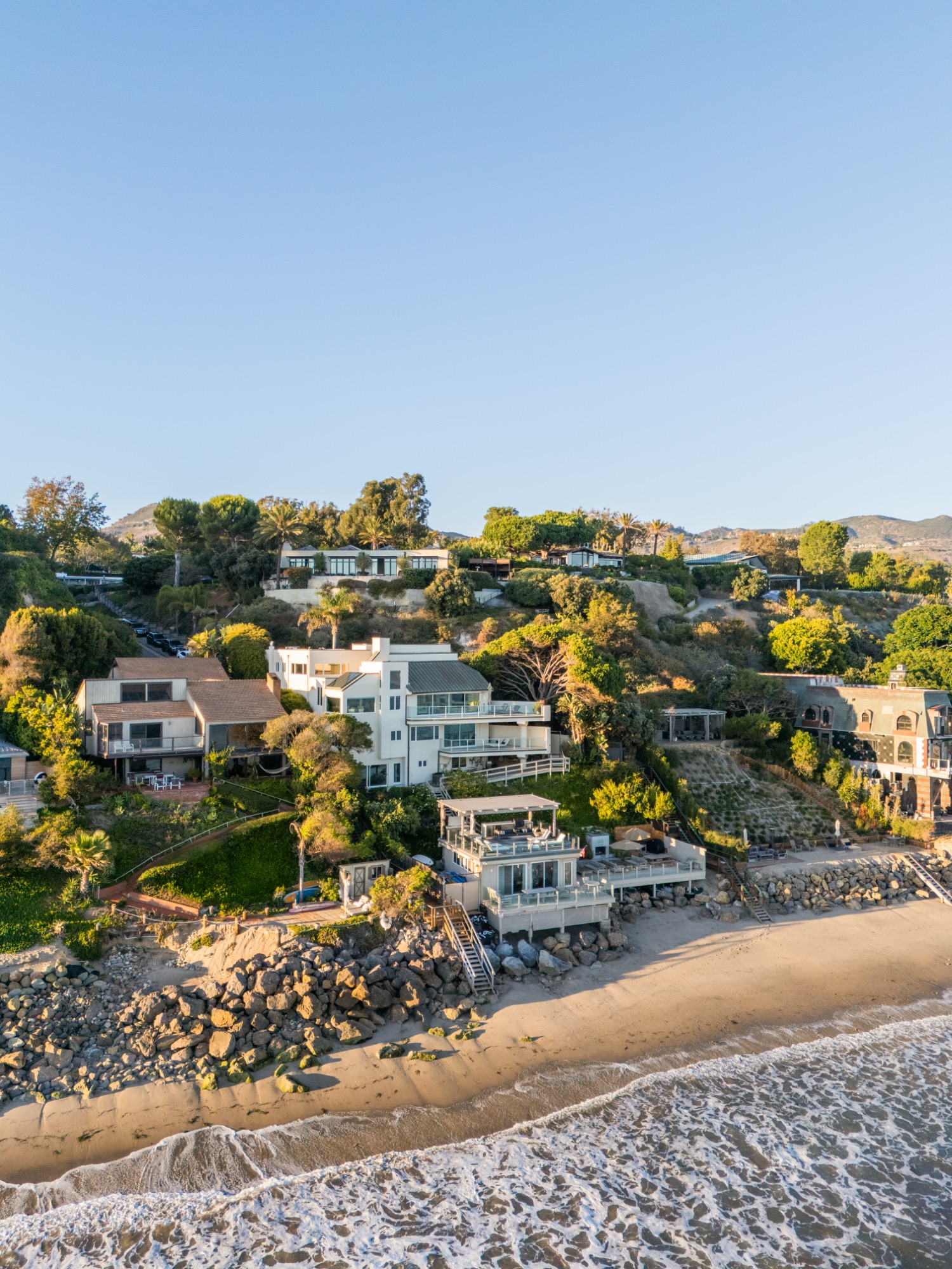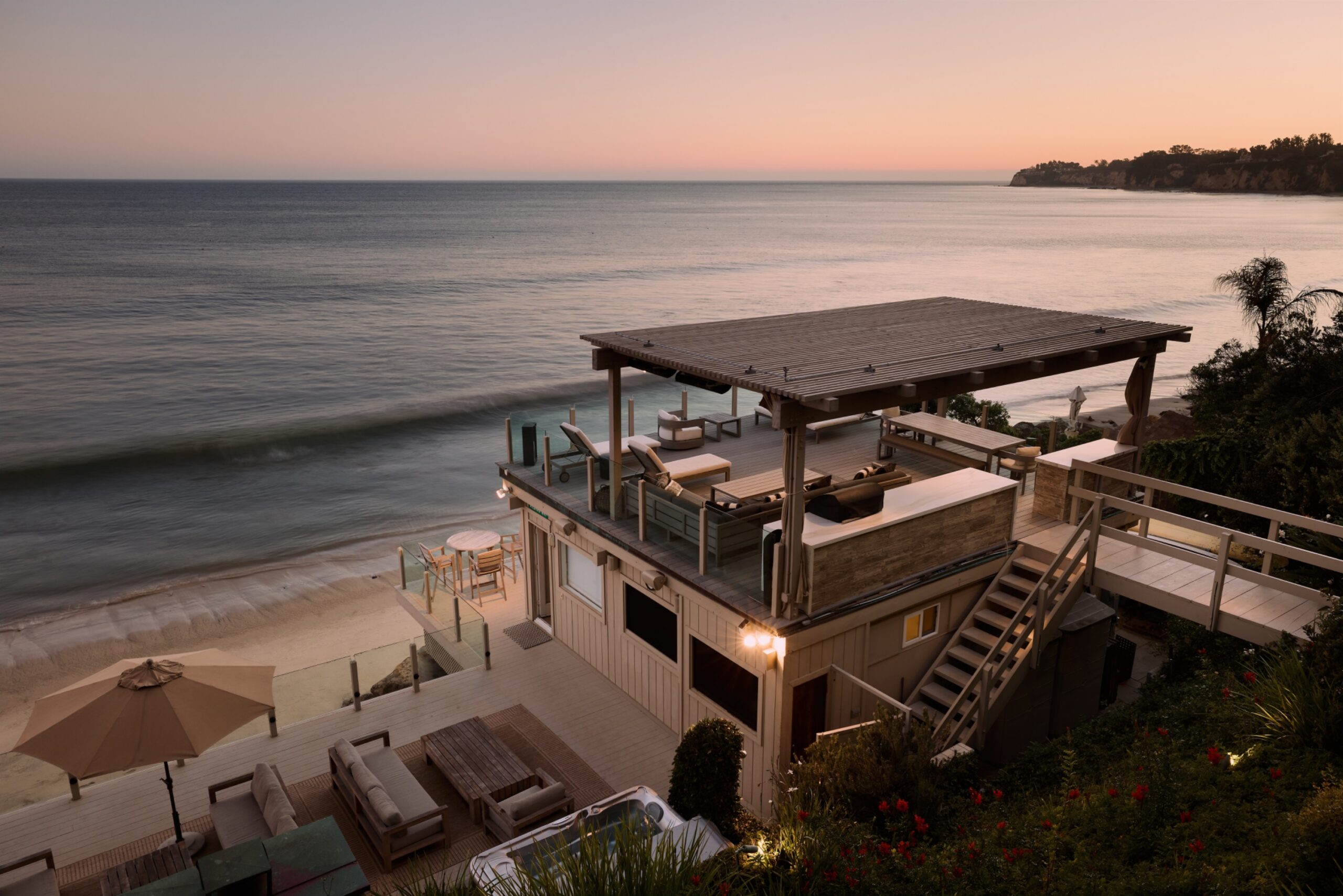 Spectacular Paradise Cove beachfront compound located on the sand in one of the most exclusive gated enclaves in the world, offering stunning blue-water views up and down the coast. With approximately 90 feet of beach frontage, this estate is not on the bluffs or merely ocean-view like others in the community that have sold in the $90 - $200 million range - it is truly oceanfront. A separate, fully self-contained second home/large cabana sits directly on the sand. A rare and expansive entertaining patio is also positioned right on the beach, along with a large rooftop deck atop the cabana - perfect for hosting gatherings and events on and in the water. The spacious, light-filled main home features four bedrooms, including dual primary suites, and a vast kitchen/dining/family great room with soaring ceilings, skylights, a fireplace, wraparound windows, and decks for lounging and seamless indoor/outdoor entertaining - all opening to the ocean and panoramic coastal views. The lower level includes a screening/game room that opens directly to the ocean, plus a full bath and a hidden kids' bunk room. The enclave itself is gated and set back from the highway, while this particular compound is located at the end of a cul-de-sac, offering the ultimate in privacy and security. The larger of the two primary suites includes a fireplace, sitting area, walk-in closet, ocean-view spa bath, and a private deck with views. The second home/cabana features a kitchen, full bath, dining area, and large living room that opens to the water and oceanfront deck. Whether used as a main residence or a vacation retreat, this compound presents a rare opportunity to live on the sand within Malibu's premier, ultra-exclusive, billionaires' gated enclave.