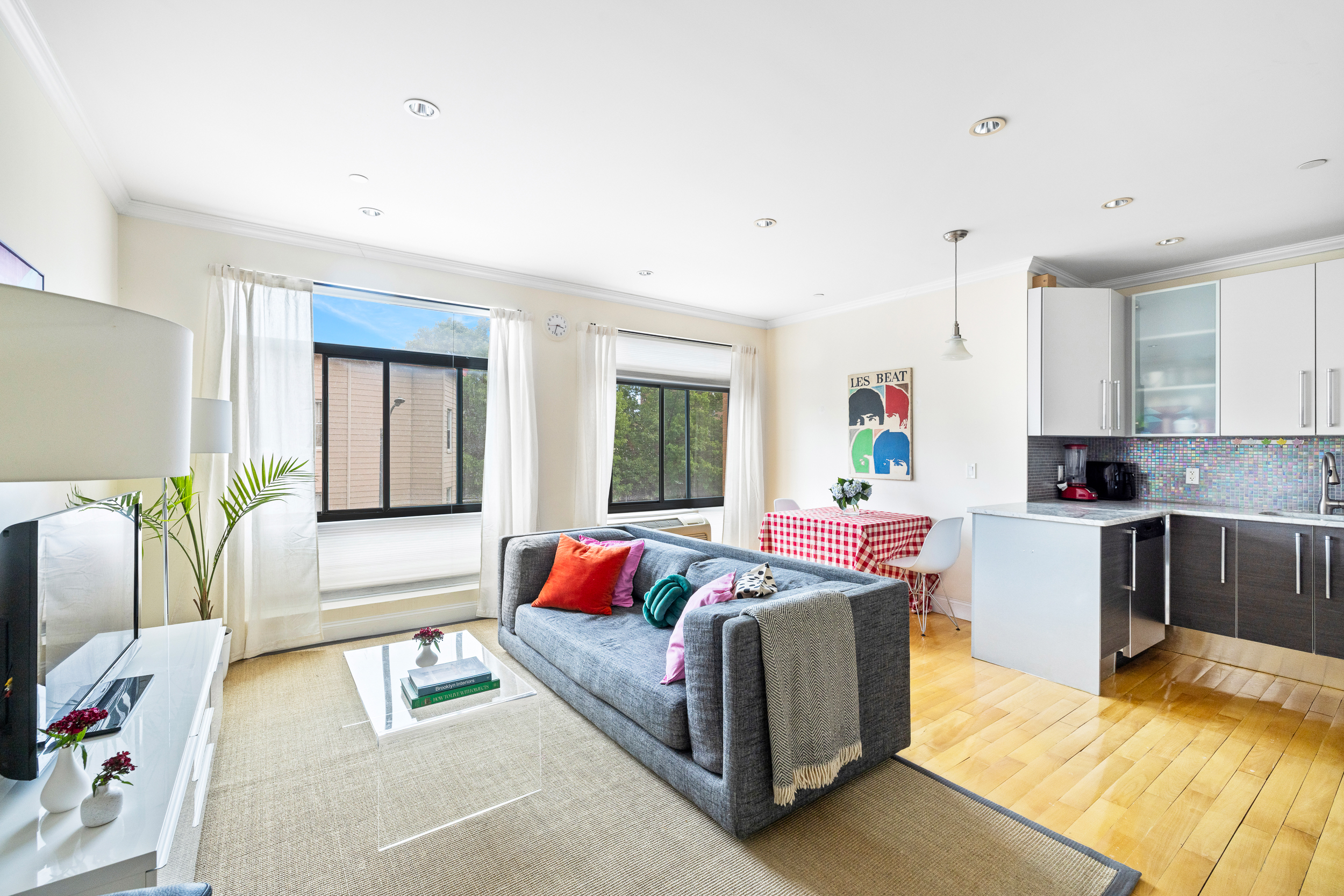 Located in a boutique elevator building in Windsor Terrace, this bright 2-bedroom, 2-bath condo awaits. Inside, the home features an open-concept living and dining area that flows seamlessly into a stylish kitchen with a breakfast counter, stainless steel appliances, and a chic tile backsplash. The spacious primary bedroom offers direct access to a private balcony, while the showstopping roof deck (one flight up) invites al fresco entertaining. Additional highlights include a deeded parking space, a storage unit and a prime location just three blocks from the F/G subway and just moments from Prospect Park.