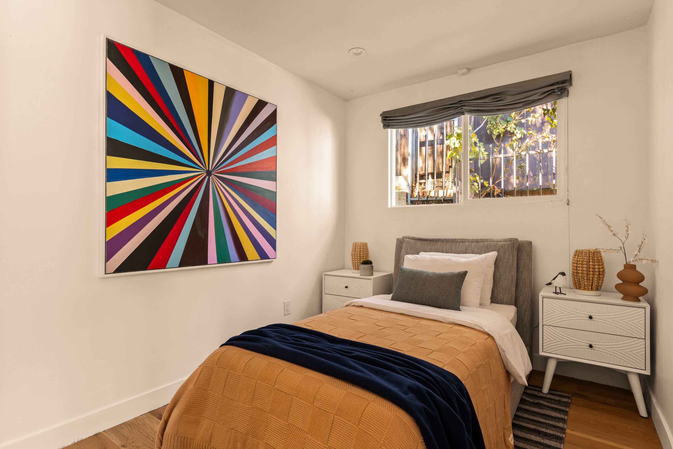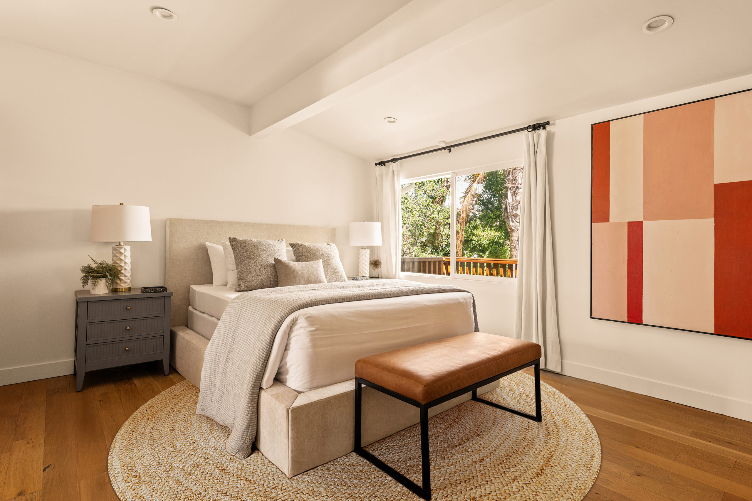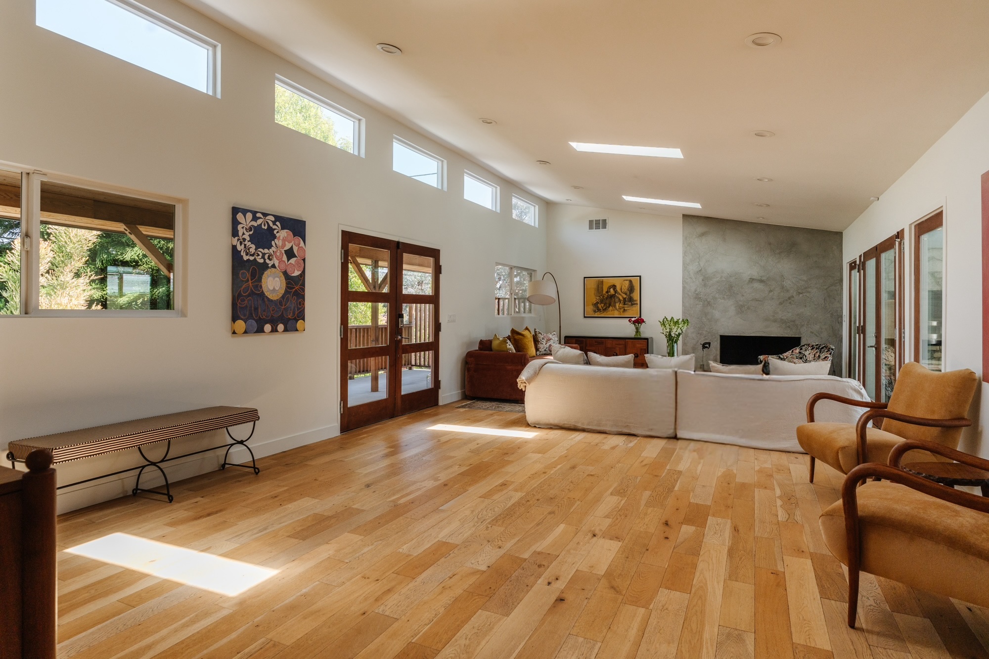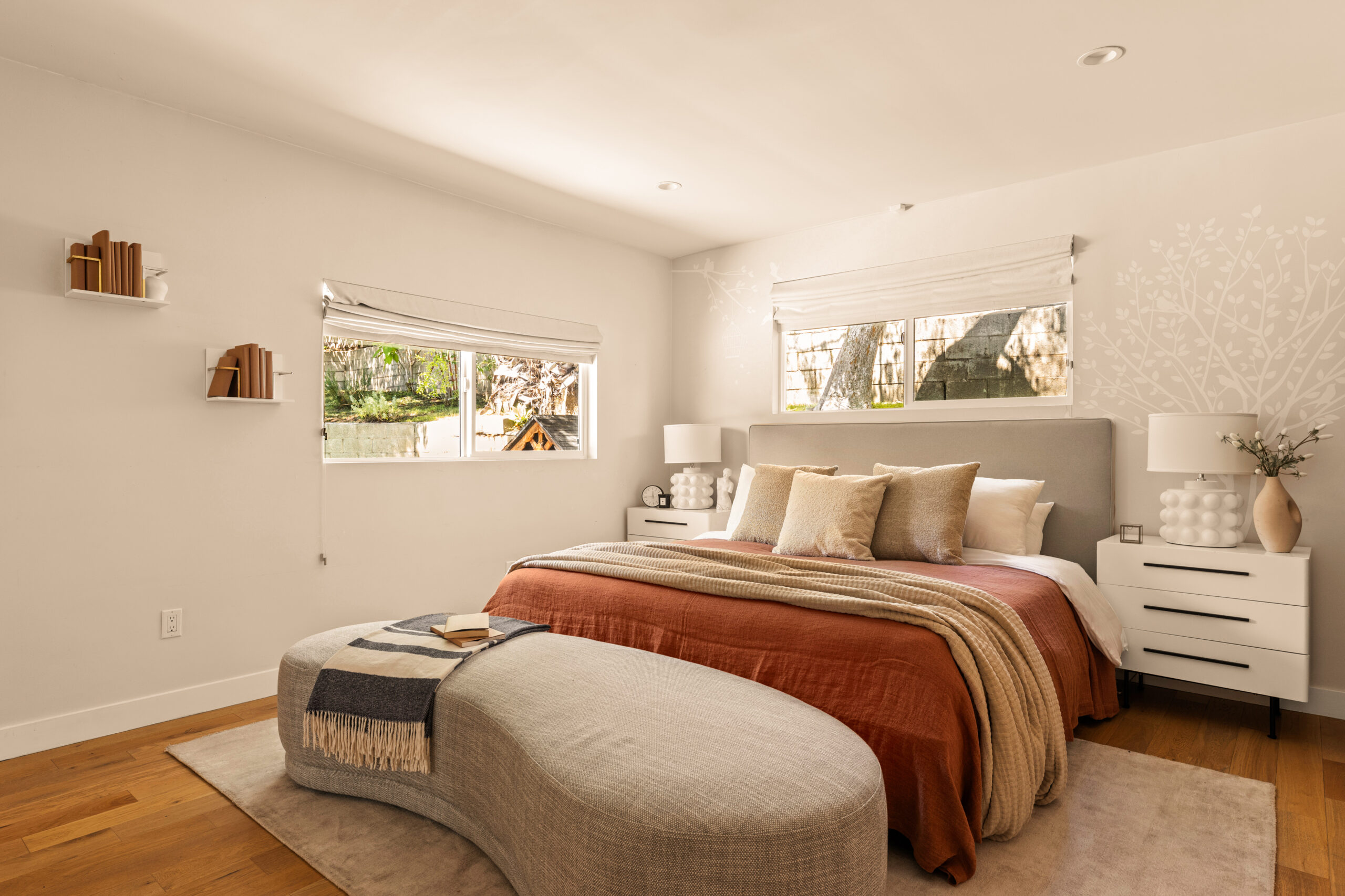3019 Surry Street is a true contemporary charmer located in the coveted Ivanhoe School District. Set behind soaring trees that offer both beauty and privacy, this expansive 4-bedroom, 5.5-bath home boasts 3,457 square feet of thoughtfully designed living space. An inviting front porch leads into sunlit interiors, where dramatic skylights and warm wood floors define the open-concept layout. The spacious living room with a fireplace flows effortlessly into the formal dining area. At the heart of the home lies a chef's dream kitchen, featuring sleek modern cabinetry, high-end appliances, a wine cooler, a bread warmer, and an oversized eat-in island that comfortably seats five or more. A private, luxurious primary suite with direct access to the pool occupies one wing of the home and is situated near other well-appointed guest rooms, along with an additional primary suite option that also offers a spa-inspired designer bathroom. Additional highlights include a bonus den with casual dining space ideal for both entertaining and everyday living, a dedicated office, and a three-car garage. Indoor living transitions seamlessly to the outdoors through large glass doors, opening to a resort-like backyard with a covered patio, sparkling pool, open-air dining area, and lush lawn. Ideally located in the heart of Los Feliz - close to top restaurants, entertainment, and parks - 3019 Surry Street embodies the best of California living.