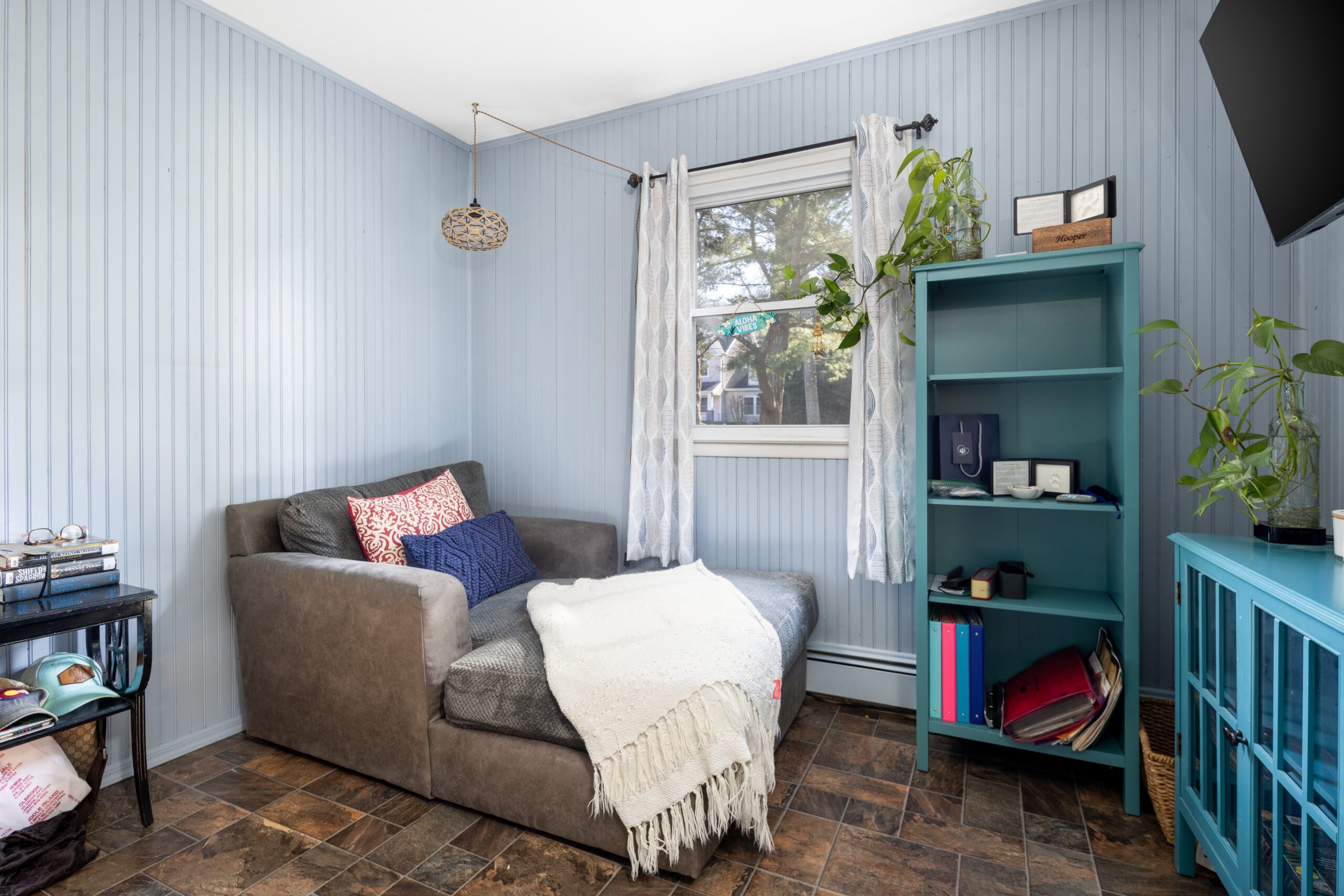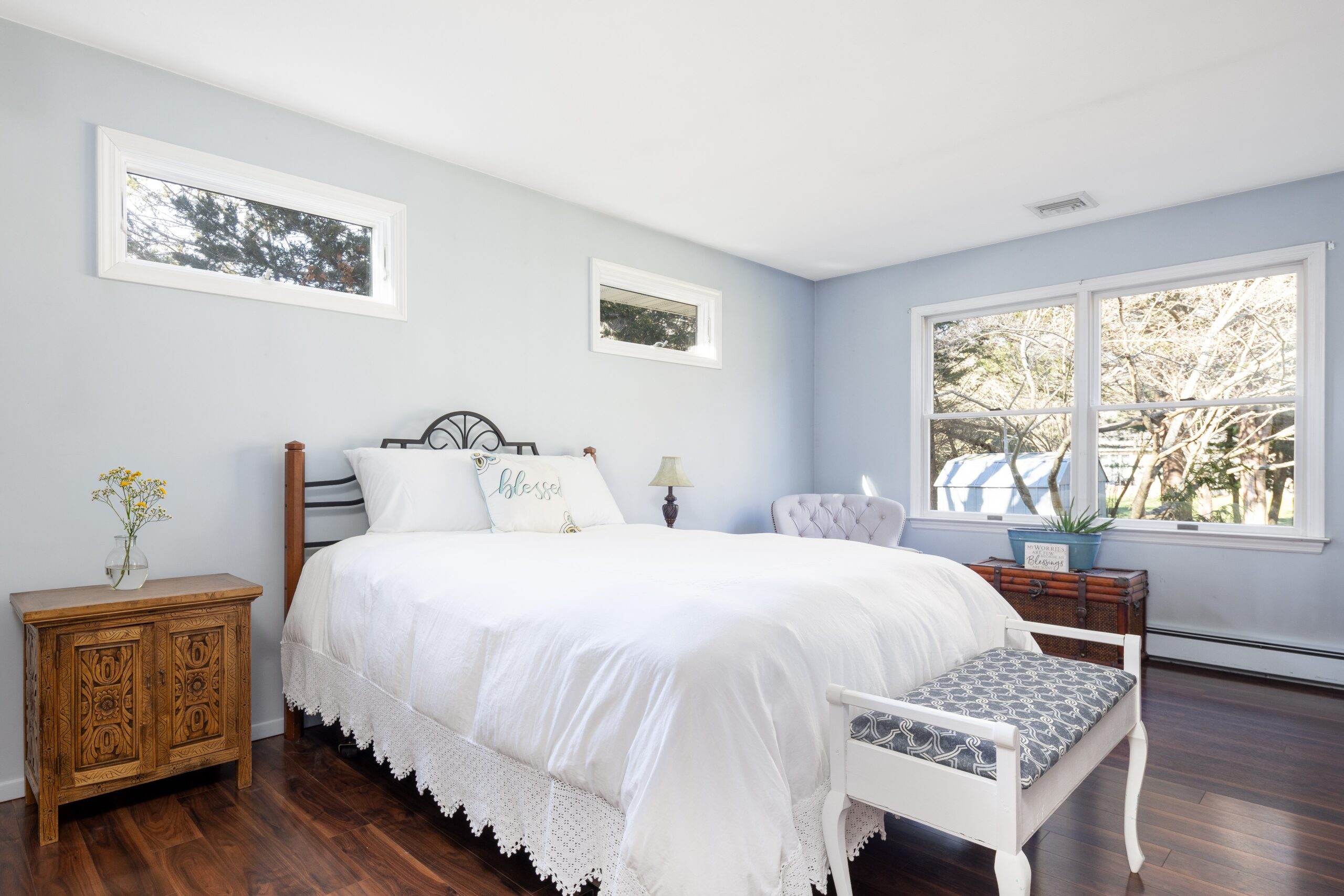 Set within the coveted private Sandy Bay beach community in Southold, this beautiful three-bedroom, two-bath extended ranch offers relaxed coastal living in an enchanting, private setting. A welcoming entry opens to a spacious living room anchored by a classic brick fireplace, while the thoughtfully designed layout includes a primary bedroom with an ensuite bath, an additional bonus family room ideal for entertaining or everyday living, and a full basement providing ample storage or future potential. Outdoors, a three-season covered patio overlooks the lush, expansive backyard with generous room for a pool, creating the perfect backdrop for summer gatherings or quiet moments near the water.