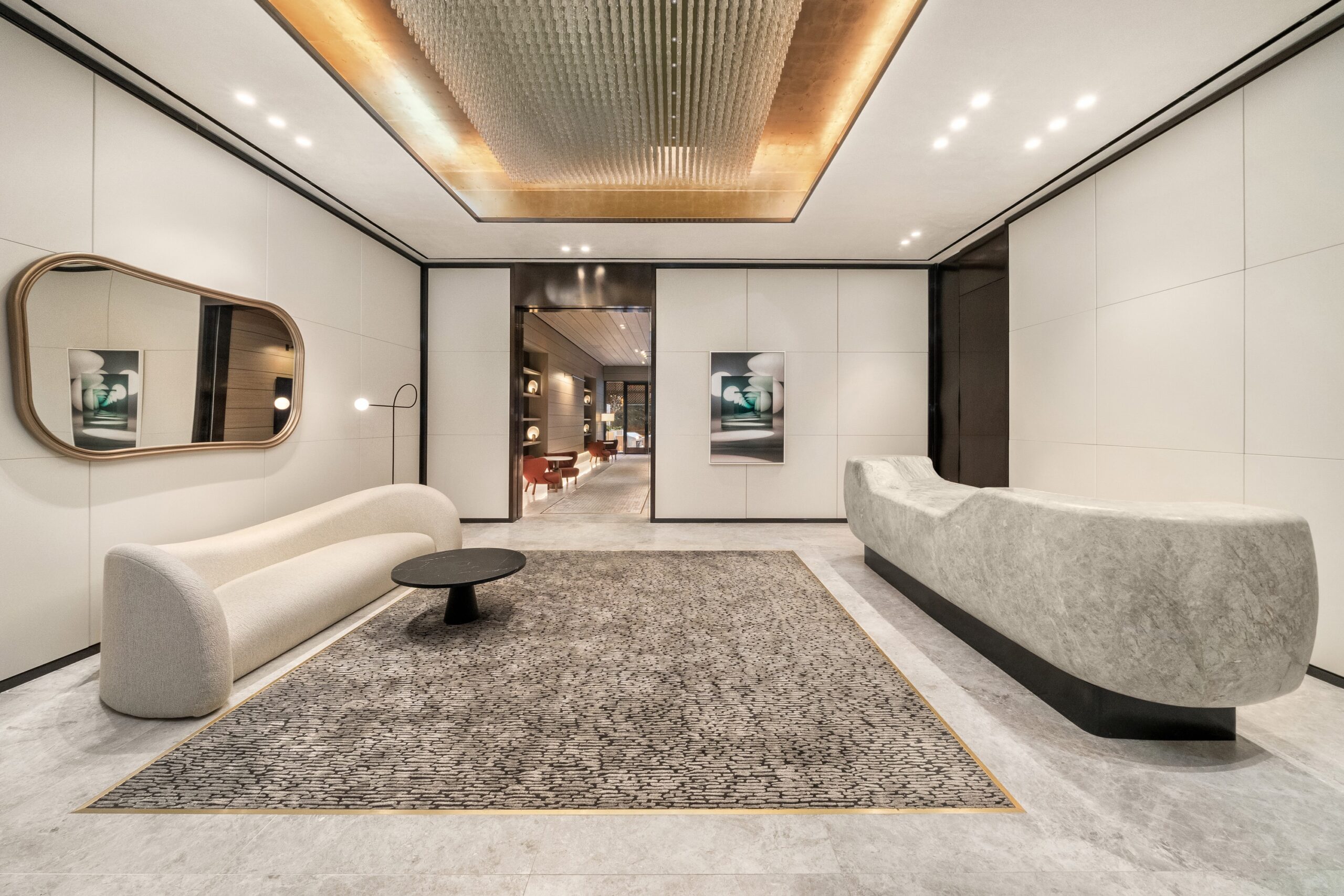 Sutton Tower stands as a testament to New York's rich Art Deco heritage, seamlessly blending into the fabric of the neighborhood and the city. As you approach the building, a welcoming bronze canopy beckons, accompanied by oversized custom sconces casting a warm glow. Inside, a graceful procession from the lobby through the library leads to a dramatic double-height atrium overlooking the Sculpture Garden, adorned with a bas-relief piece crafted by Juul-Hansen himself. Beyond the confines of the residence, Sutton Club awaits, offering four light-filled floors of amenities including a lounge area, terrace, private dining room, catering kitchen, pool, spa, and a full gym and fitness center.