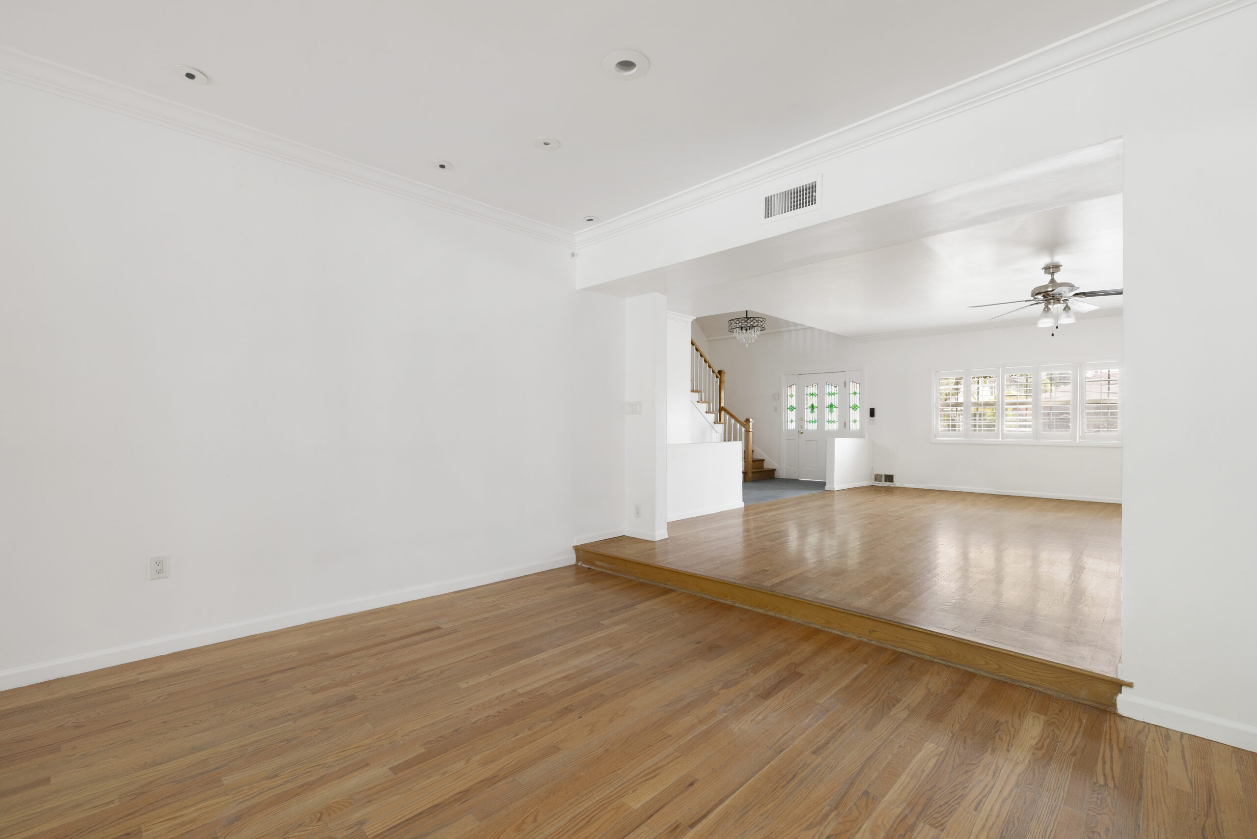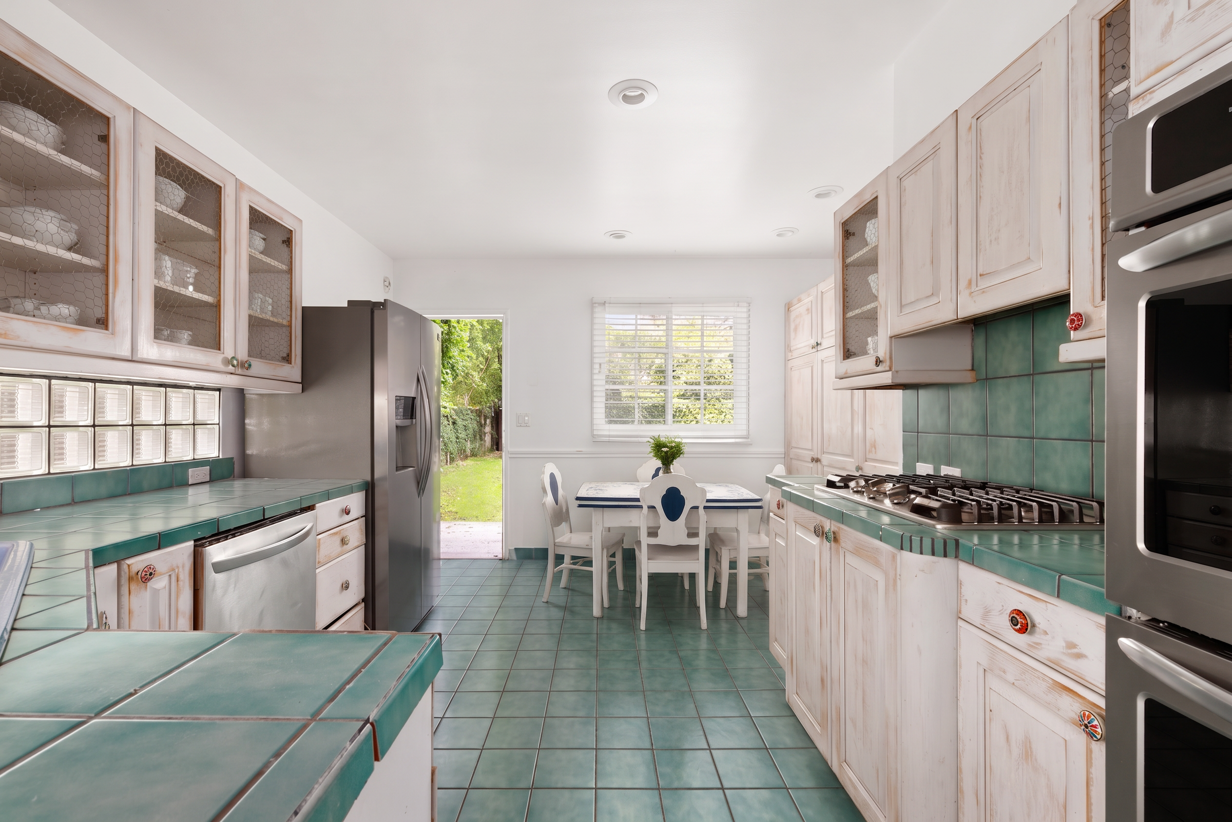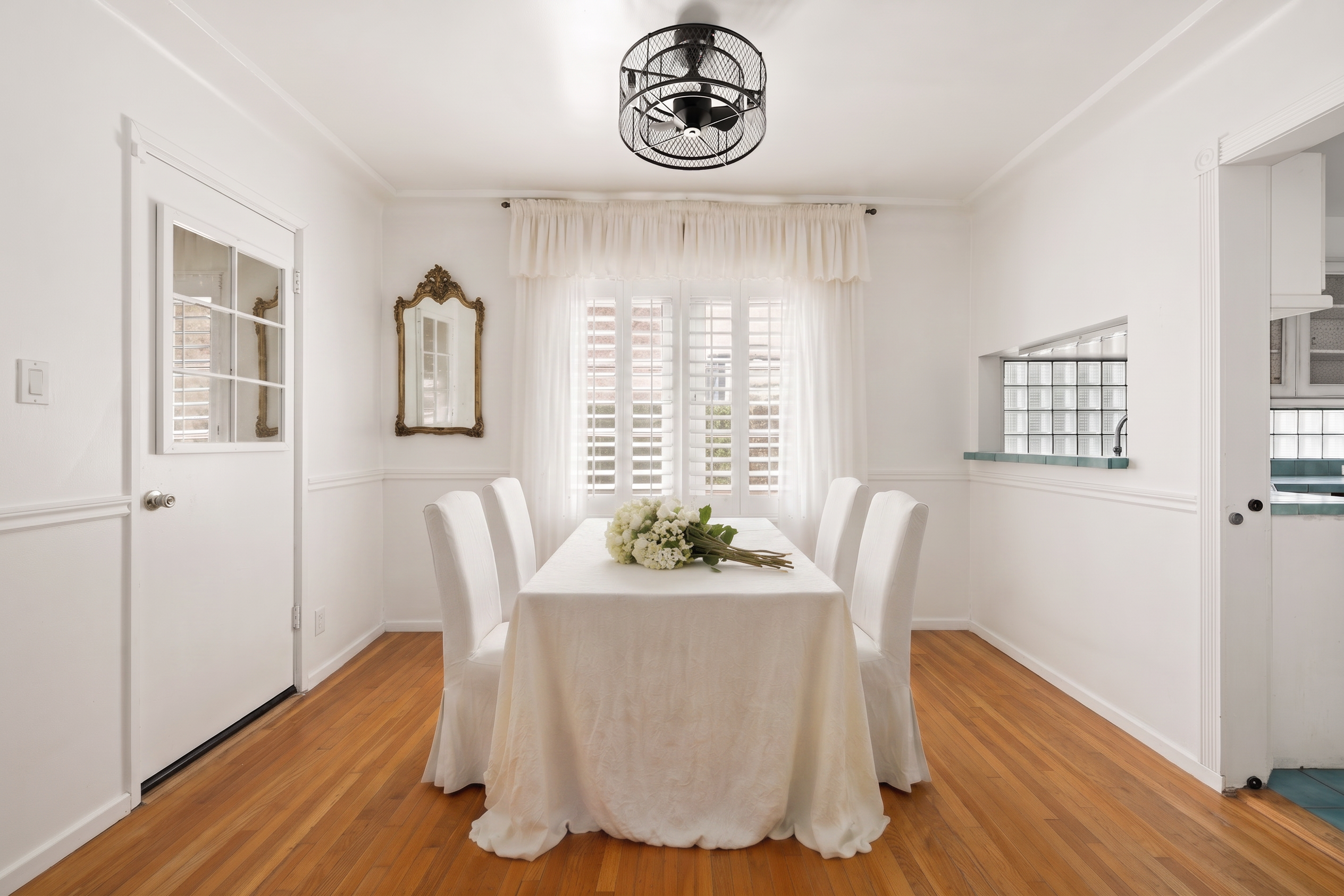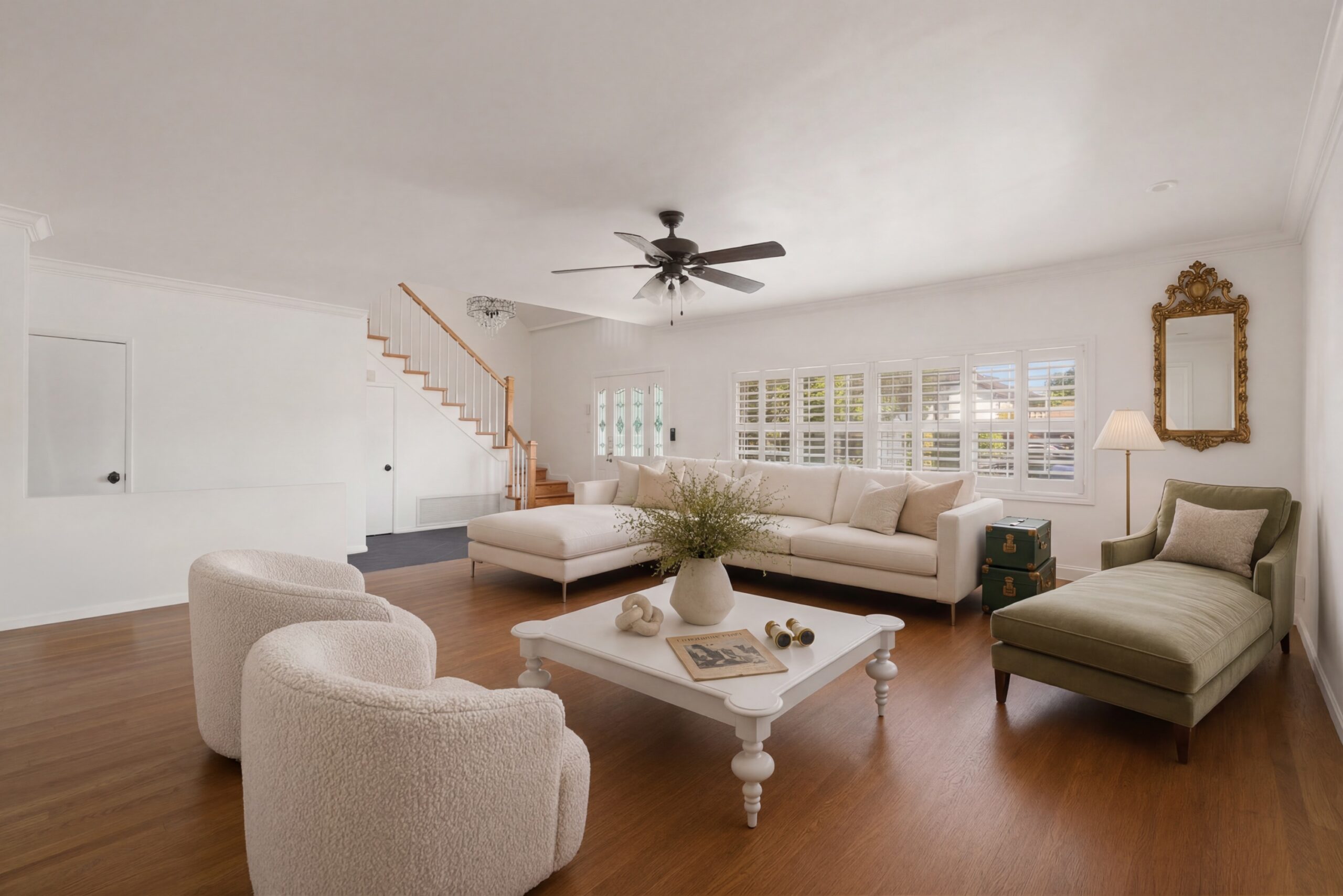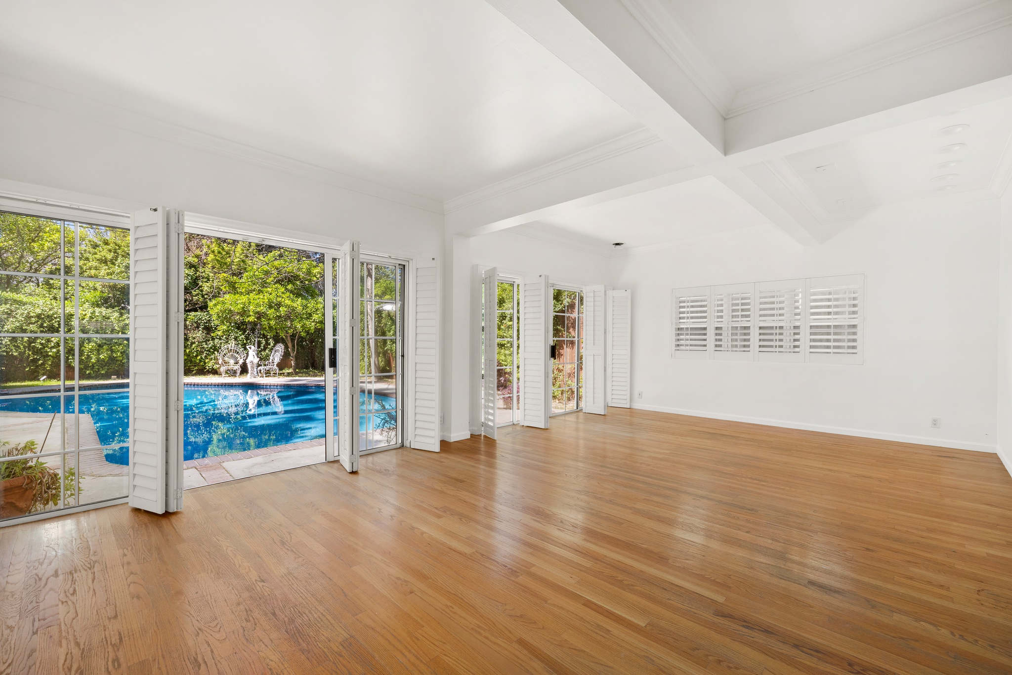 Gentry Rose Manor evokes the romance and charm of a storybook English cottage, reimagined at an impressive approximately 3,800-square-foot scale within Studio City's historic and coveted "The Grove" enclave. Tucked along a quiet residential pocket, the residence unfolds through expansive living spaces. A built-in bar anchors multiple gathering areas, while walls of windows and oversized sliding glass doors blur the line between indoors and out, inviting natural light and garden views throughout. The vintage-inspired kitchen with breakfast nook pairs beautifully with a formal dining room, and a first-floor ensuite bedroom offers ideal flexibility for guests, a home office, or multigenerational living. Upstairs, the spacious primary suite serves as a serene retreat, featuring a custom walk-in closet, an elegant ensuite bath, and a private terrace with treetop vistas overlooking the secluded backyard and pool. Two additional generously sized guest bedrooms on the second floor each feature walk-in closets and share a well-appointed bathroom with classic finishes. An additional upper-level suite provides versatile space for guest quarters, a creative studio, gym, or optional fifth bedroom. Outside, enchanting lush grounds surround a large pool designed for relaxation and entertaining, while a direct-access garage adds everyday convenience. The upper level also offers extensive hidden storage, thoughtfully finished with hardwood flooring and sheetrock along both sides, including a window-lined nook providing an abundance of functional and easily accessible space. Ideally positioned near Ventura Boulevard's celebrated dining, shopping, and cafes, the Studio City Farmers Market, and Radford (CBS) Studio Center, where legendary early television and film history originated, and just minutes from Universal Studios and the Metro Line, the home is also located within the Carpenter Community Charter and Walter Reed Middle School districts.