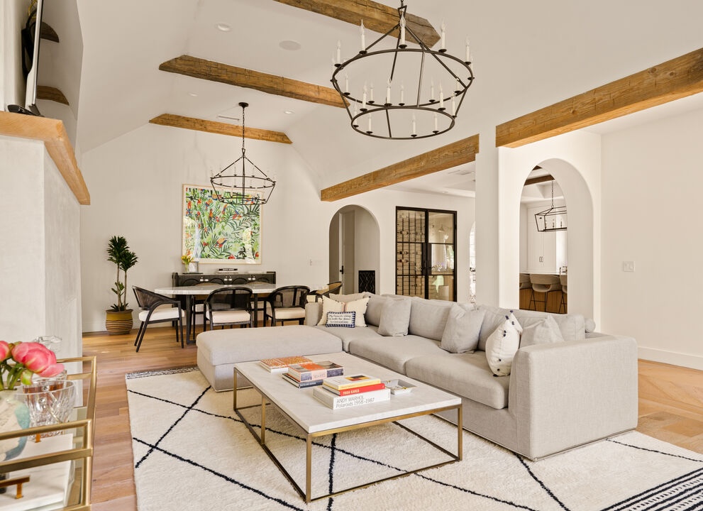 Stunningly reimagined Spanish-style oasis just minutes from The Grove, Melrose District, and West Hollywood. This fully remodeled 4-bed, 3-bath estate combines timeless architectural elegance with modern luxury, tucked behind 10+ foot hedges and a gated perimeter for ultimate privacy. A dramatic arched entry opens to a sunlit foyer with barrel ceilings and classic archways. The living room features a 9' arched window, three 7' windows, and 14' vaulted ceilings with exposed beams and matching iron chandeliers. The open floor plan flows seamlessly to a chef's kitchen with handcrafted finishes, oversized island, and custom wine cellar perfect for entertaining. The primary suite offers direct yard access, a walk-in closet, and a spa-like bath with a freestanding volcanic limestone tub framed by an elegant arched alcove. Two additional ensuite bedrooms provide comfort and flexibility. The private backyard boasts a large wooden deck, built-in BBQ, and a converted garage ideal for a home office or gym, with space to add a pool. Smart home upgrades include a Nest thermostat, Cat6 wiring, and a tankless water heater. A true turnkey retreat in one of LA's most sought-after locations.