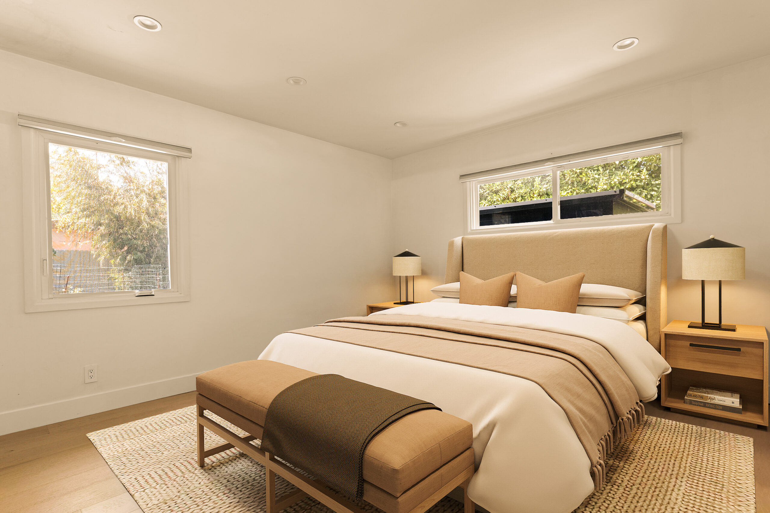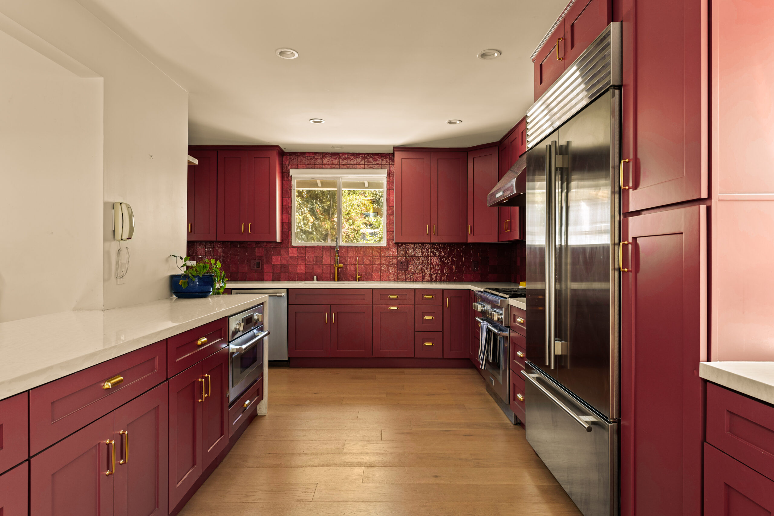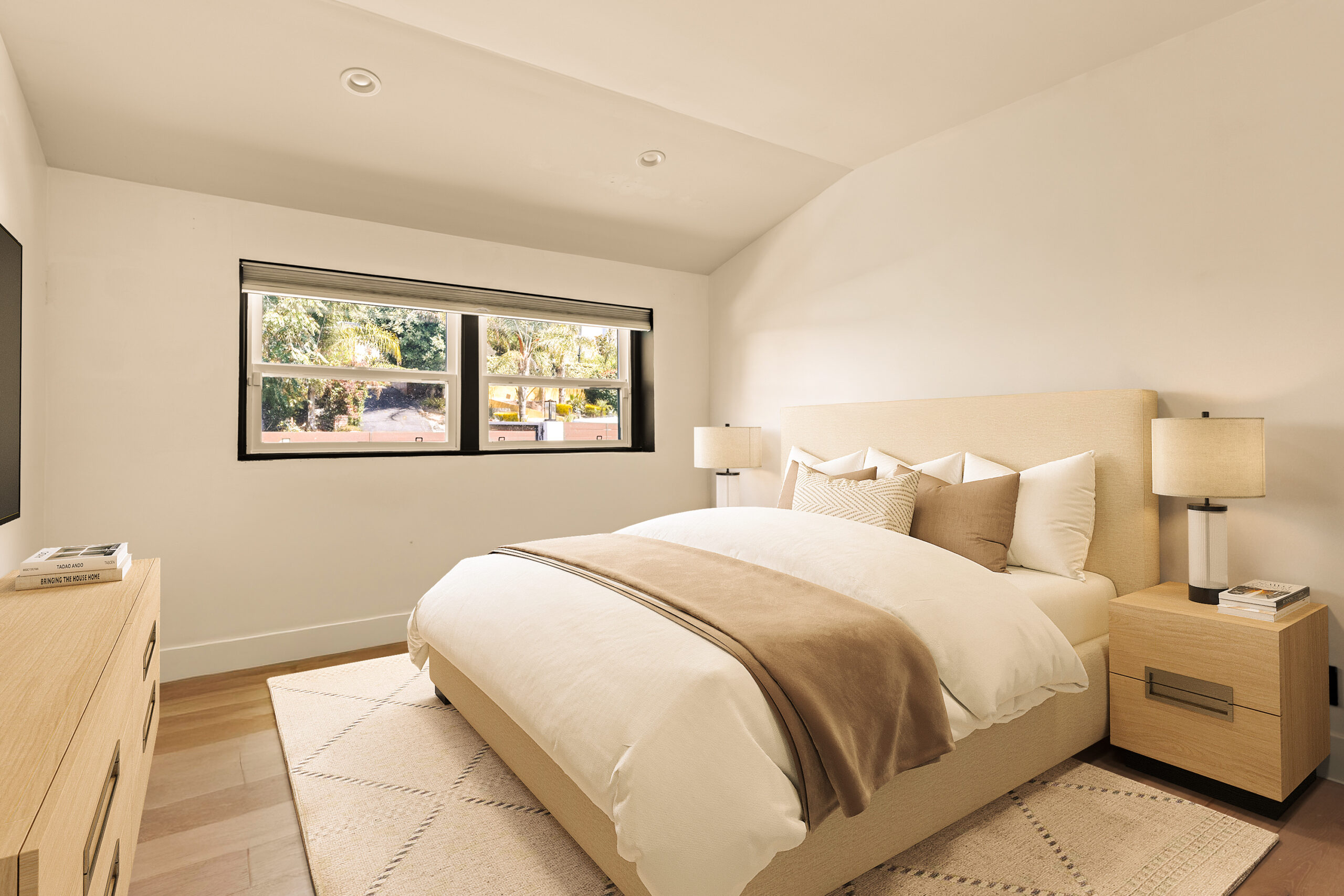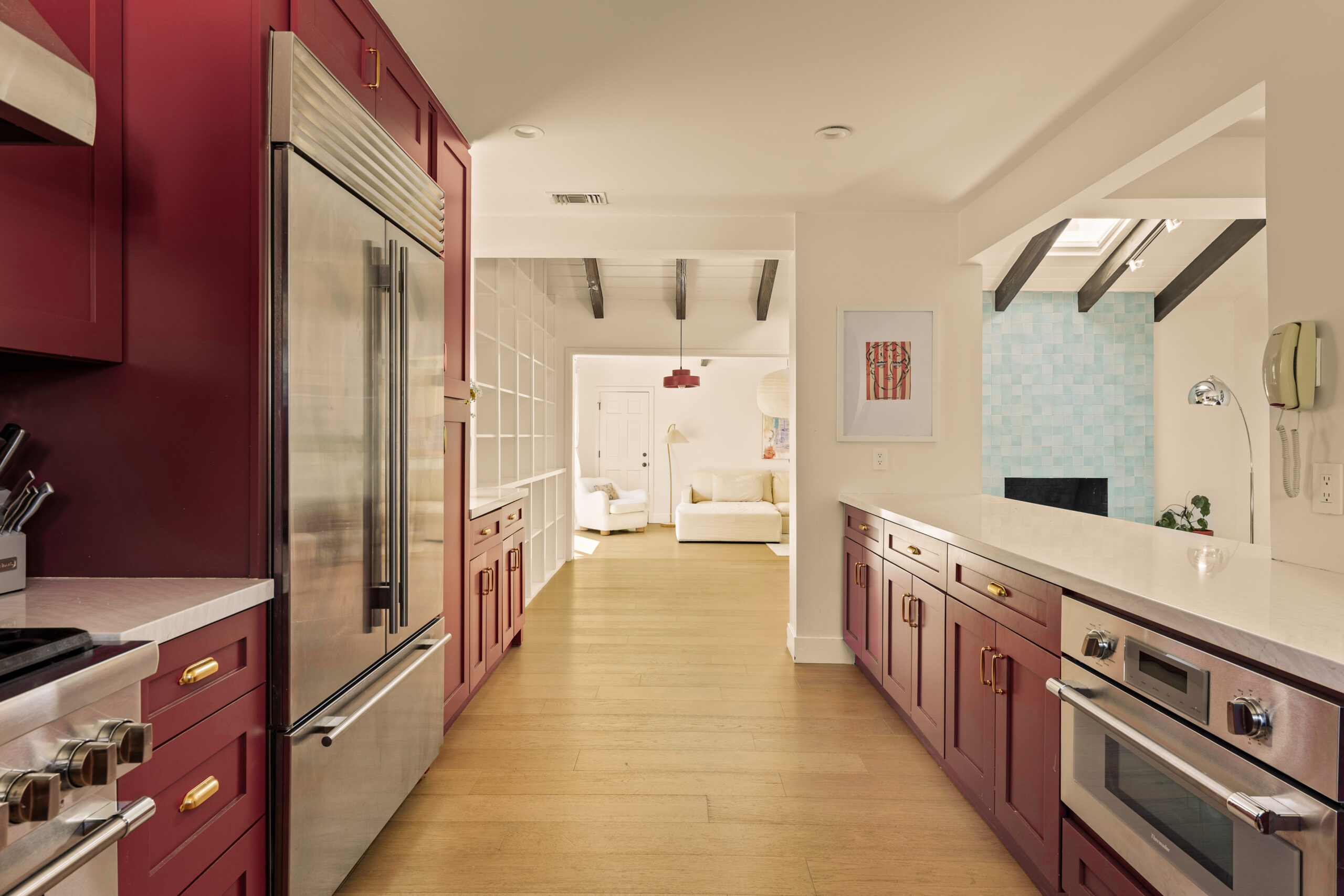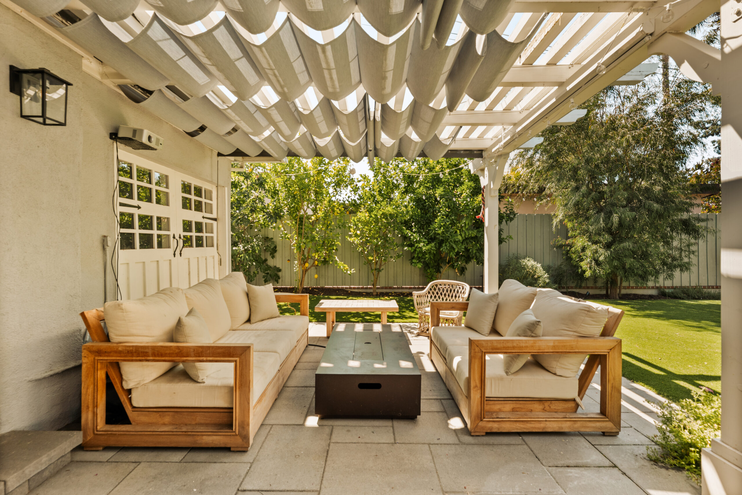 Set behind a gated entry, 4841 Don Pio Dr is a curated Woodland Hills residence that blends privacy, natural light, and refined design. This three-bedroom, two-bath home, plus a converted garage ideal for a studio, gym, or office, offers open-concept living enhanced by exposed beams, skylights, and thoughtful details throughout. A striking teal-tiled fireplace anchors the main living area, while the newly renovated kitchen features custom cabinetry, designer tile work, and stainless steel appliances. The spacious primary suite includes an en-suite bathroom, while two additional bedrooms offer flexibility. A secondary living room with double exposure open to a serene outdoor setting with a covered patio, turfed lawn, sauna, citrus trees, and lush garden beds. The property is equipped with solar panels, offering both sustainability and efficiency, and is securely gated with EV charging station. Ideally located near Ventura Blvd and The Commons at Calabasas, this gated home captures the essence of elevated California living with timeless style and comfort.