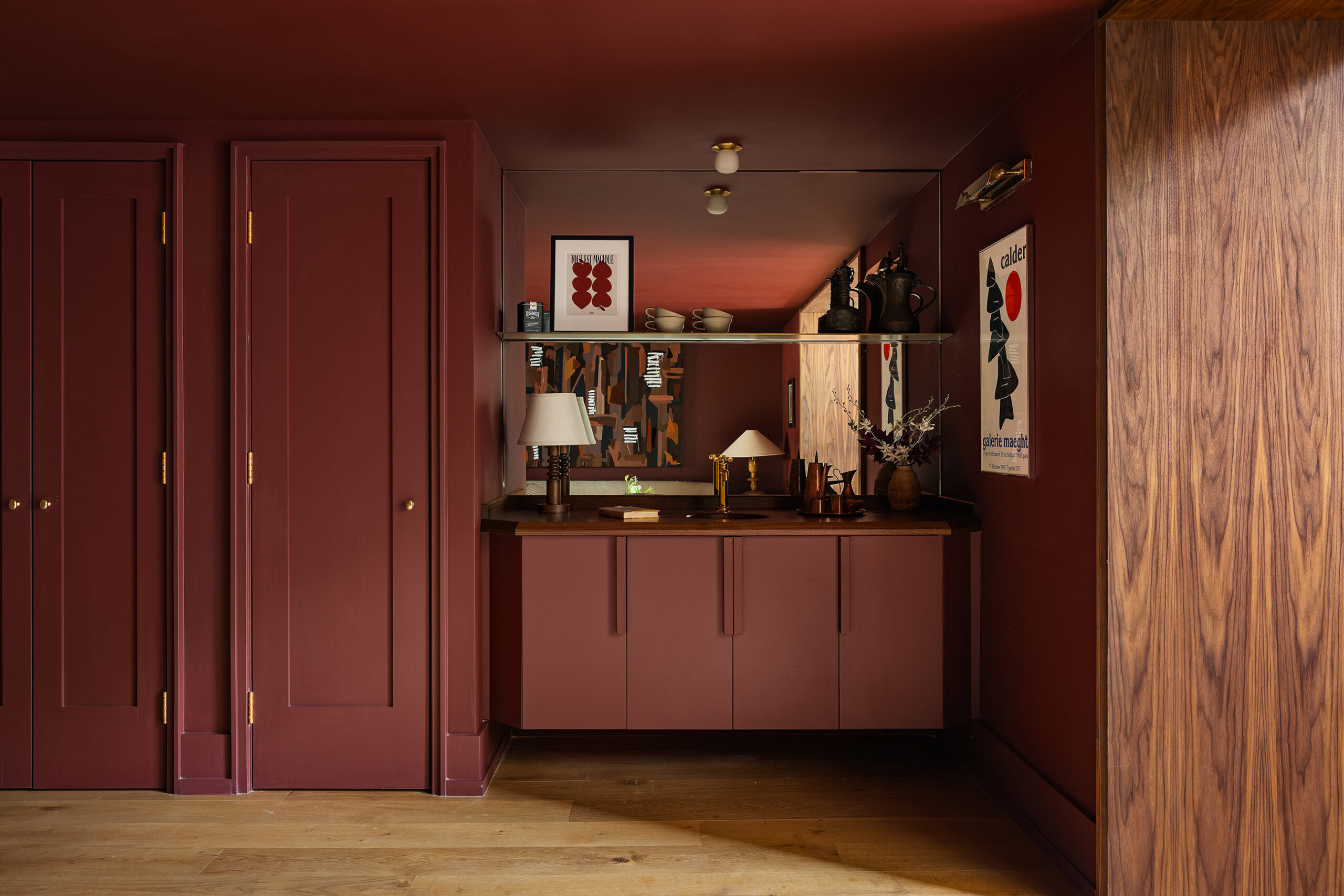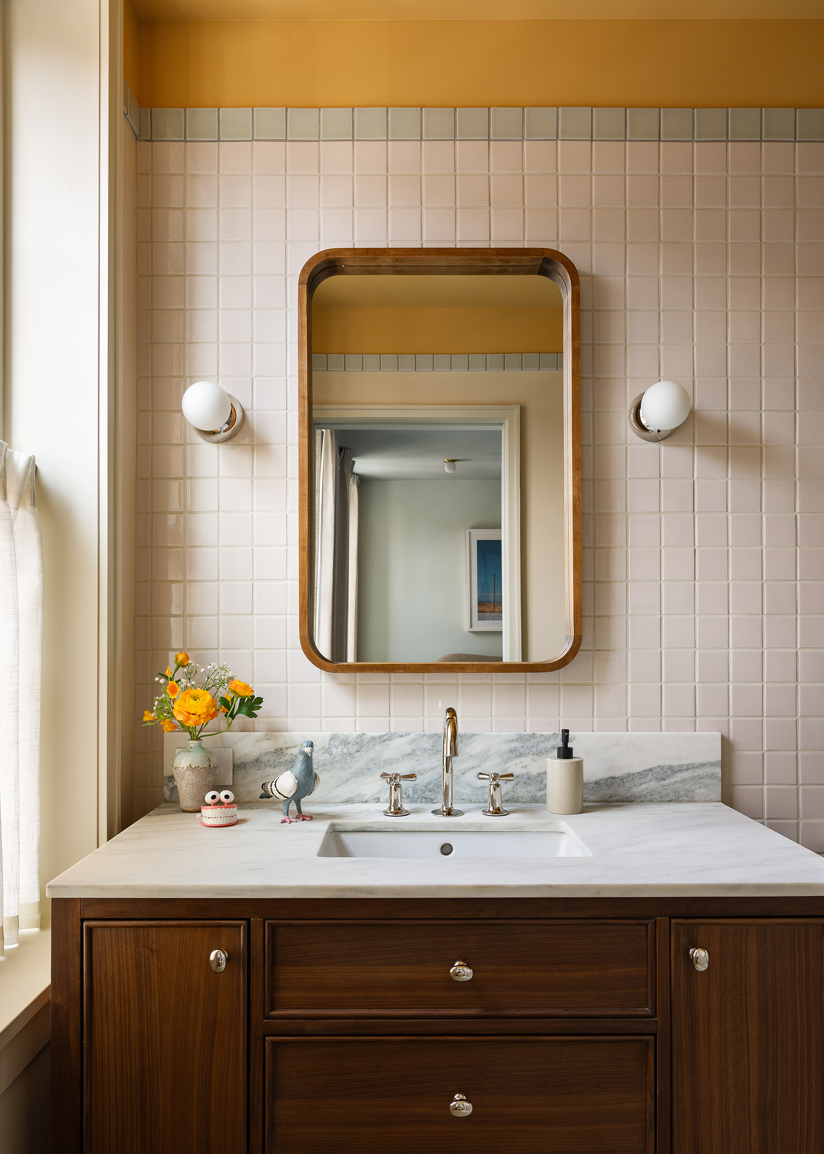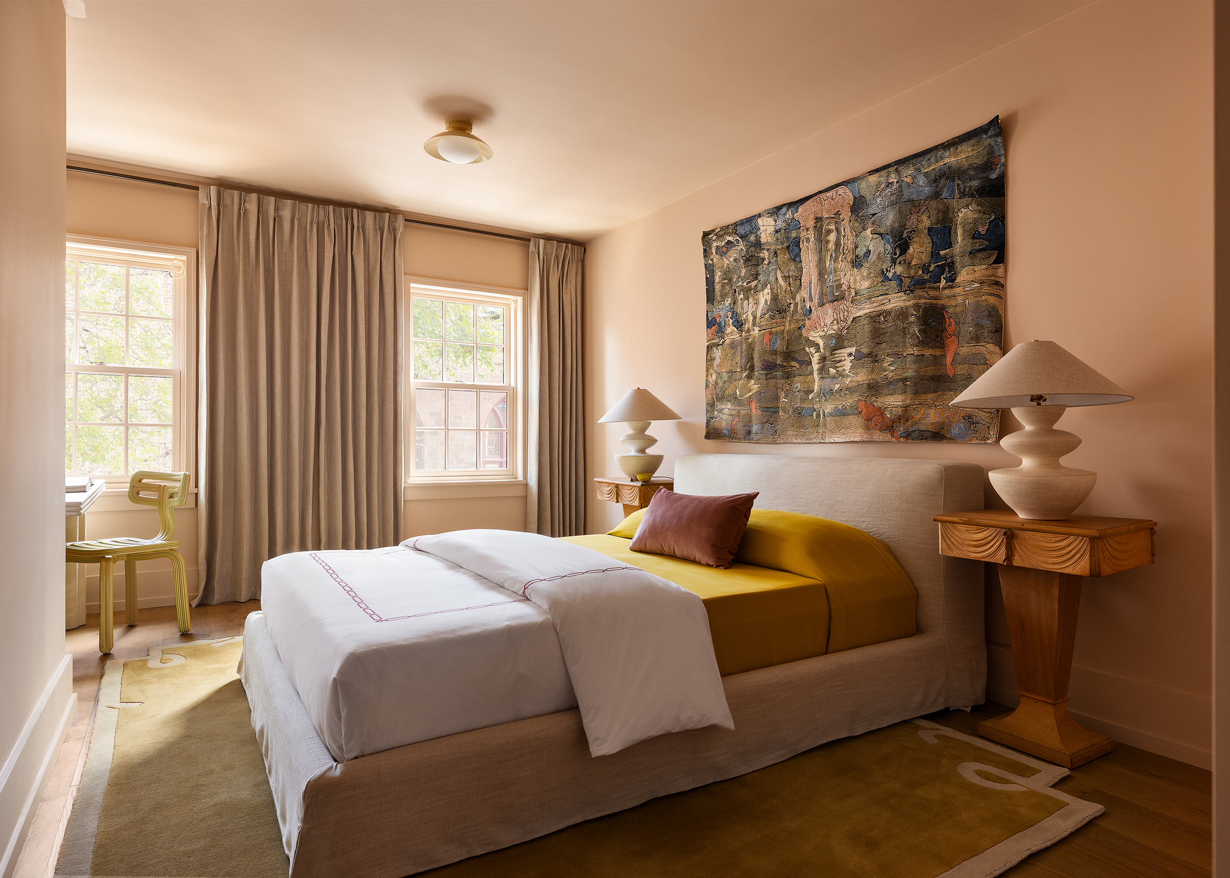 Finishes include Waterworks fixtures, bespoke cabinetry with Blum hardware, and a refined Farrow & Ball palette, complemented by limewashed walls and millwork inspired by 19th-century interiors.