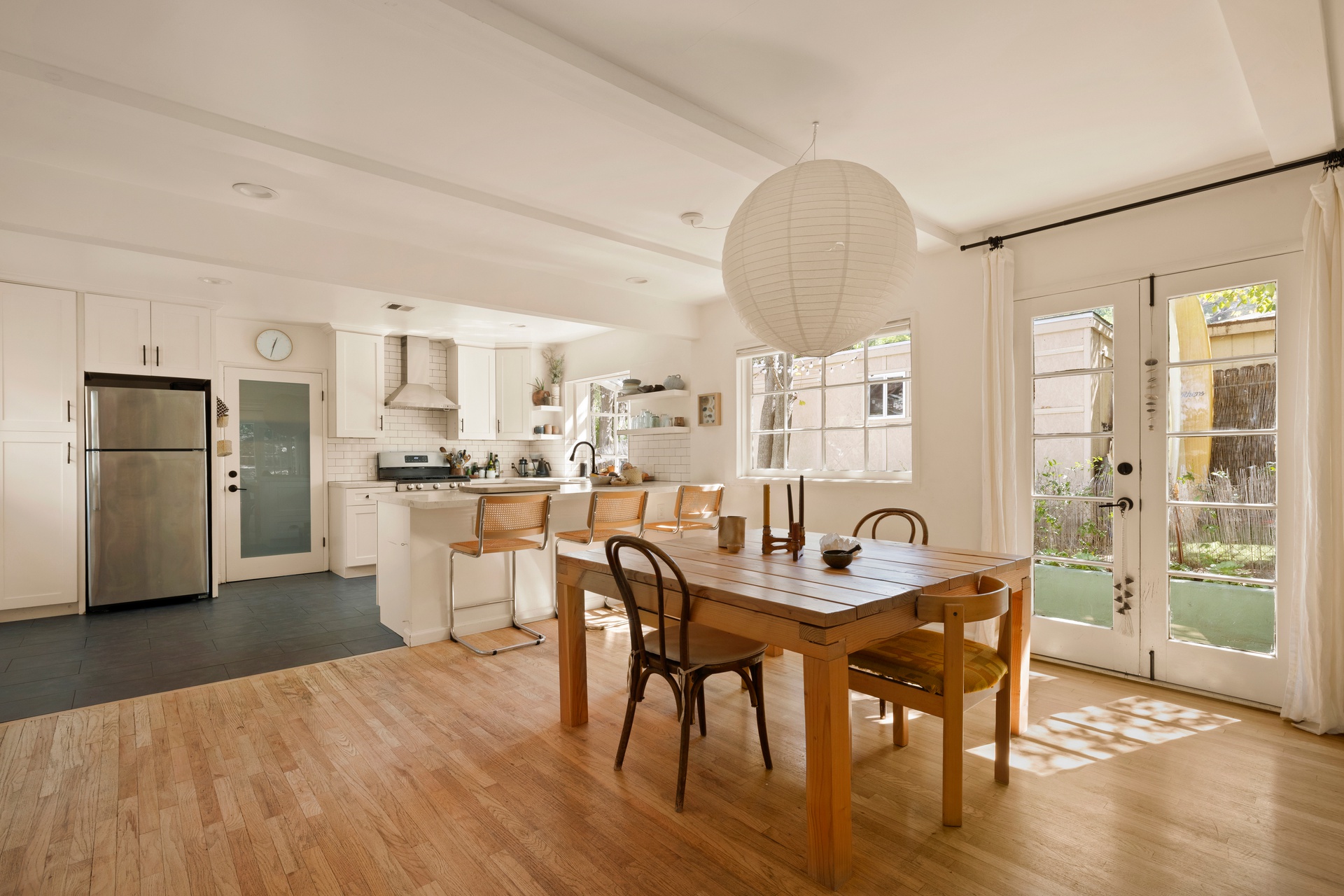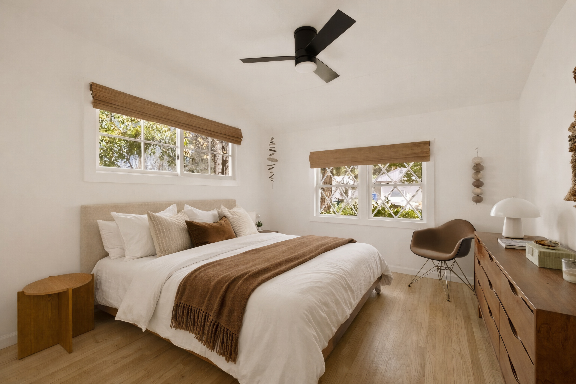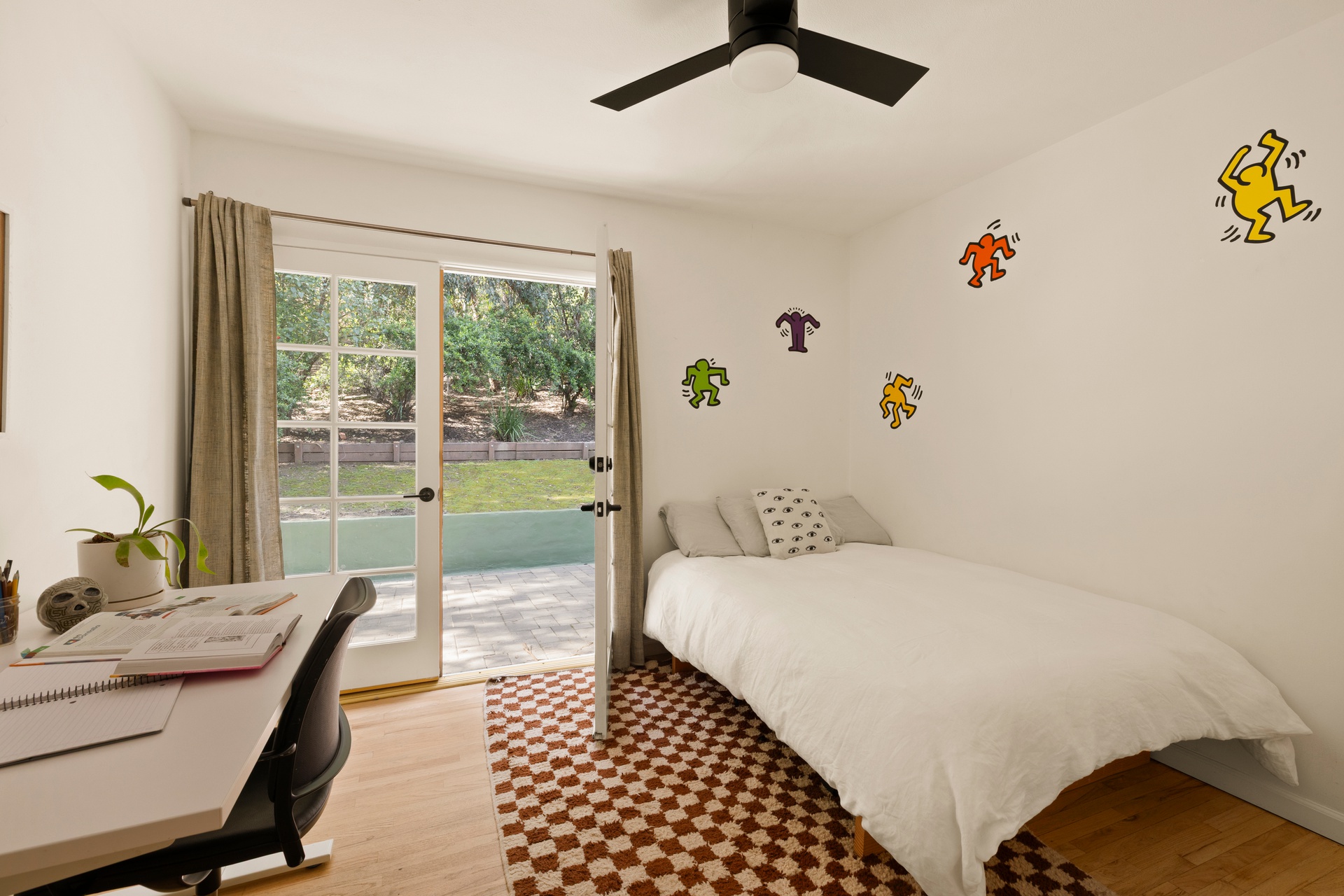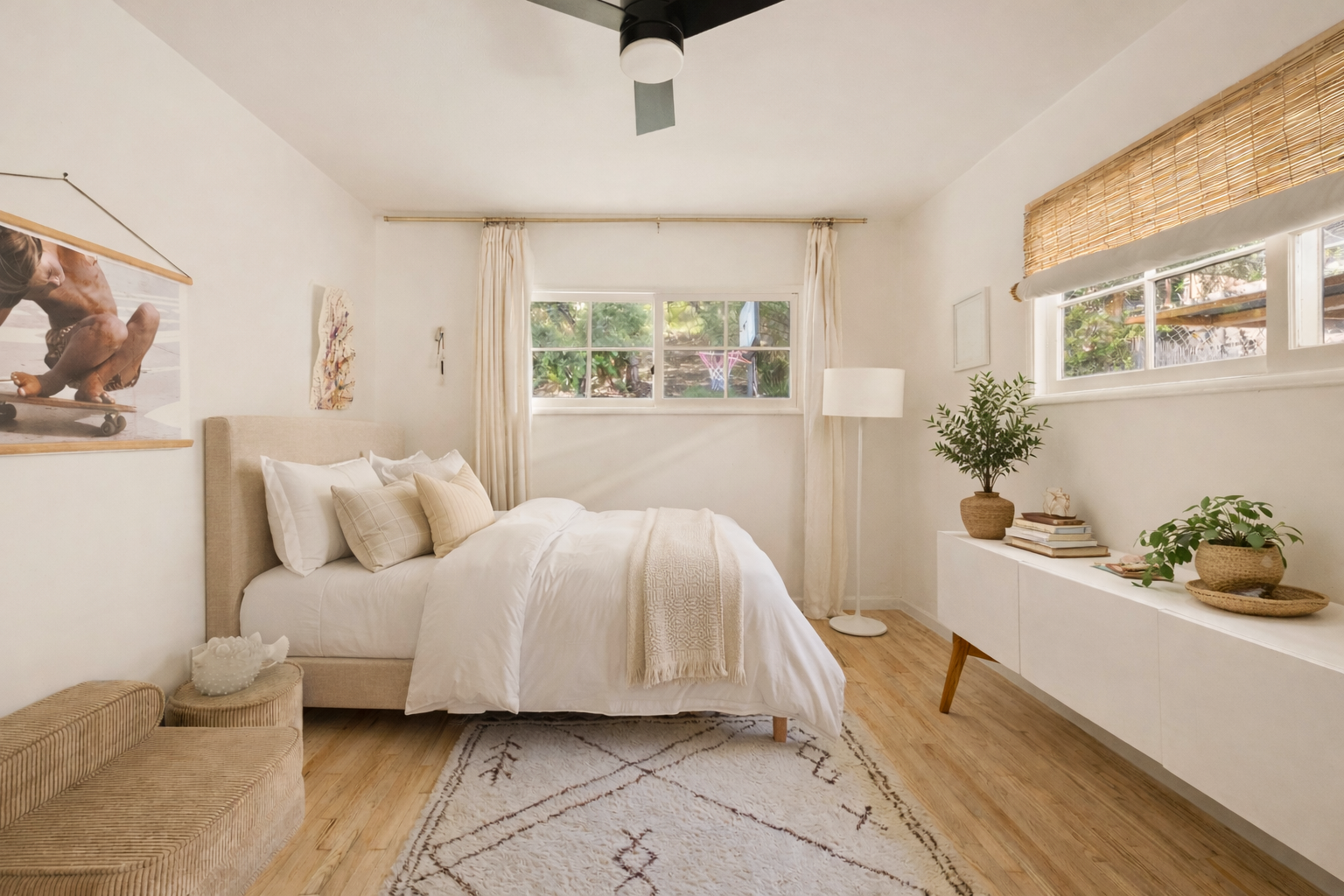 Charming and stylishly renovated ranch home south of the boulevard in Woodland Hills with a huge yard. Set near the end of a quiet, tree-lined cul-de-sac, the property features three spacious bedrooms with new bathrooms and a large bonus room. The open-concept great room includes a beautifully redone chef’s kitchen, dining area, and living room with a wood-burning fireplace. French doors open to the patio and expansive backyard, which offers ample space for a pool, sport court, pickleball court, or a potential large ADU. The home is light and bright, while mature trees in the yard provide natural shade from the western afternoon sun. The garage has been converted into a finished bonus room with its own heating and air conditioning, an infrared sauna, and generous space suitable for an office, recreation room, studio, gym, theater, or even fourth and fifth bedrooms. There is also plenty of on-site parking. A large wood-framed storage shed offers additional flexibility and can be used as a studio, office, or playhouse. The side setbacks allow for a driveway to the rear of the property, creating the potential for an ADU. The home is located within the Woodland Hills Elementary Charter for Enriched Studies and Woodland Hills Charter Academy districts, and is conveniently close to the shopping, dining, and entertainment of Warner Center and Calabasas. Don’t miss this move-in-ready home.