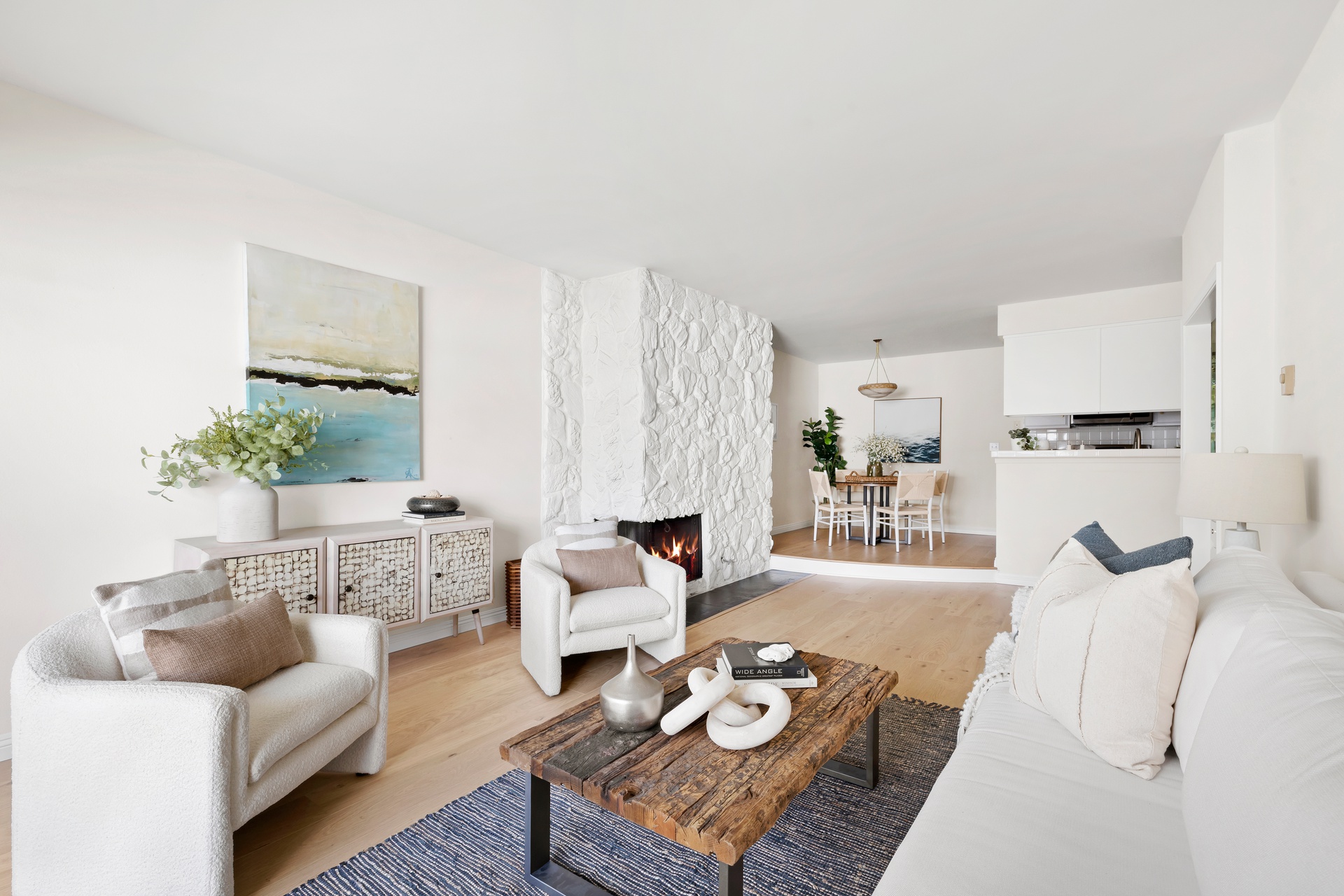 Ideally located in the heart of Santa Monica, 521 Montana Avenue #305 is a bright, top-floor condo offering an open layout and effortless access to Montana Avenue’s beloved shops, restaurants, and cafés, as well as the scenic Santa Monica bluffs and beach. The inviting living area is anchored by a fireplace and opens through large sliding glass doors to a private balcony, creating seamless indoor-outdoor flow. A dedicated dining area with a built-in wet bar makes entertaining effortless and connects to a well-appointed kitchen. The spacious bedroom and bath offer a comfortable retreat, complete with a walk-in closet, dual-sink vanity, soaking tub, and separate shower. Thoughtfully positioned with just one shared wall, the home offers a level of privacy rarely found in condo living. Residents enjoy resort-style amenities including a pool, gym, sauna, and community room, all within a prime Westside location and the Roosevelt Elementary, Lincoln Middle, and Santa Monica High School district.