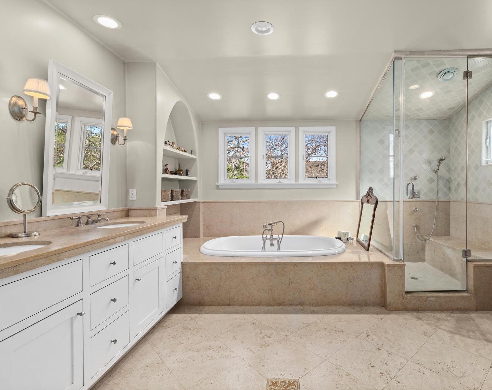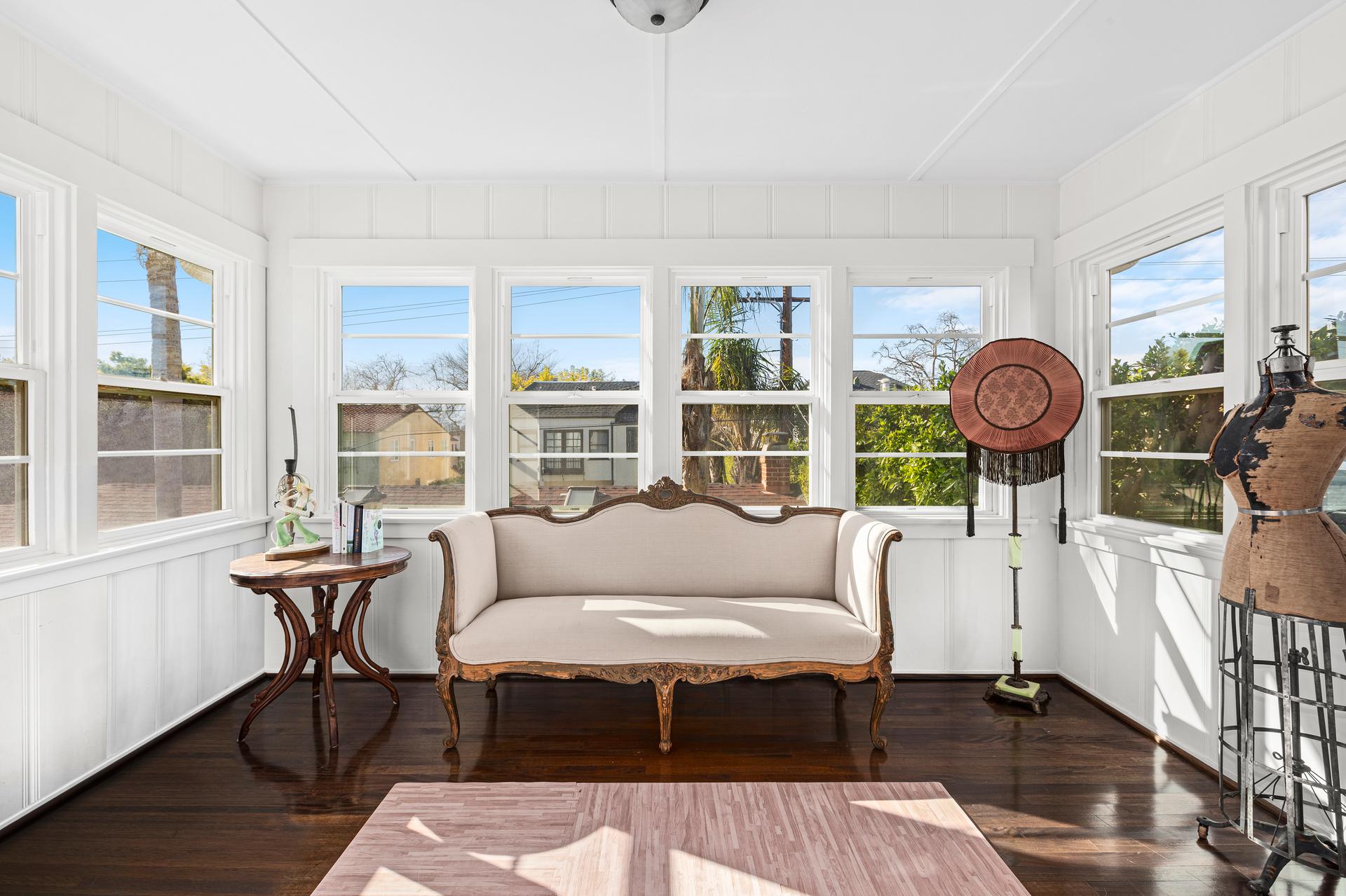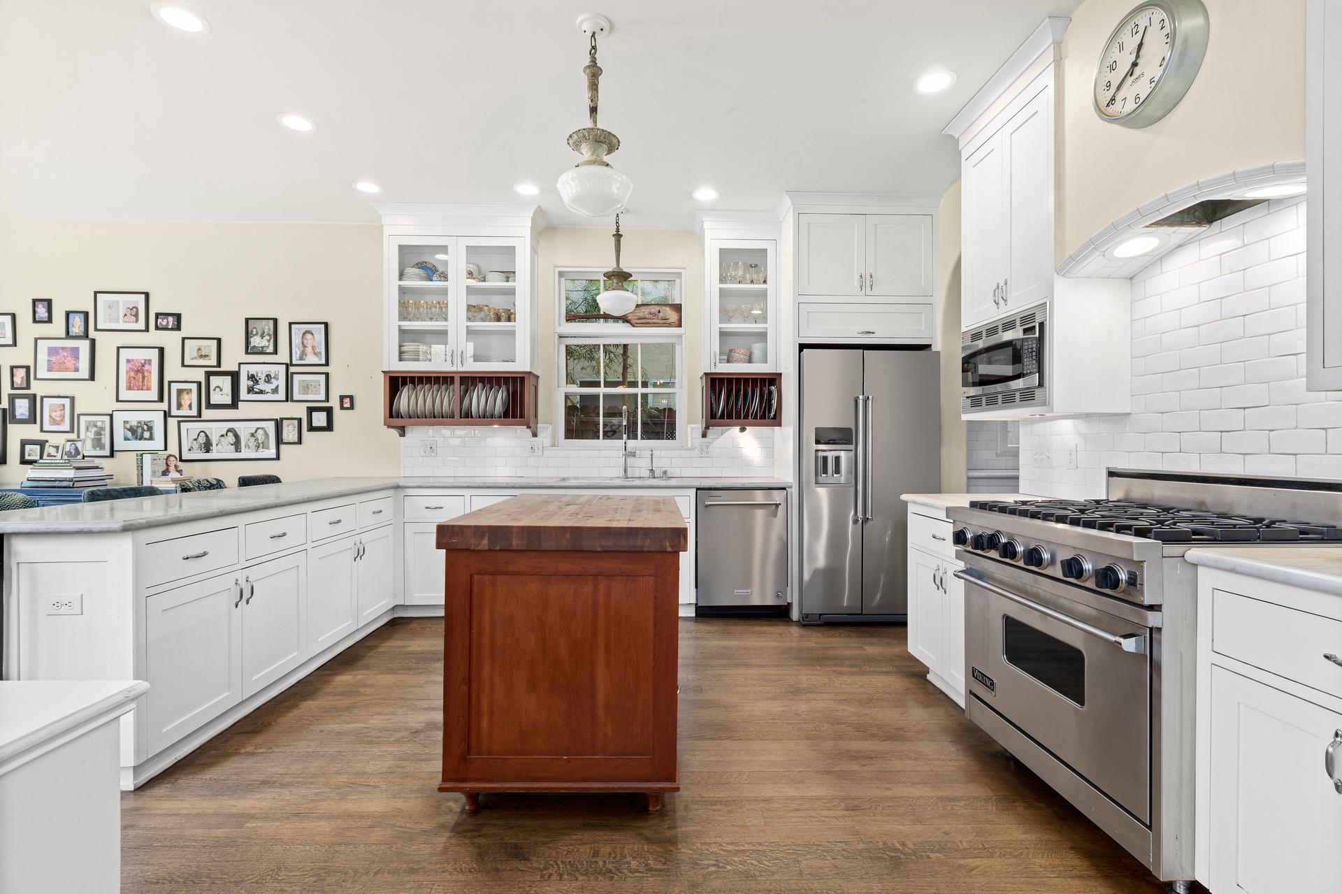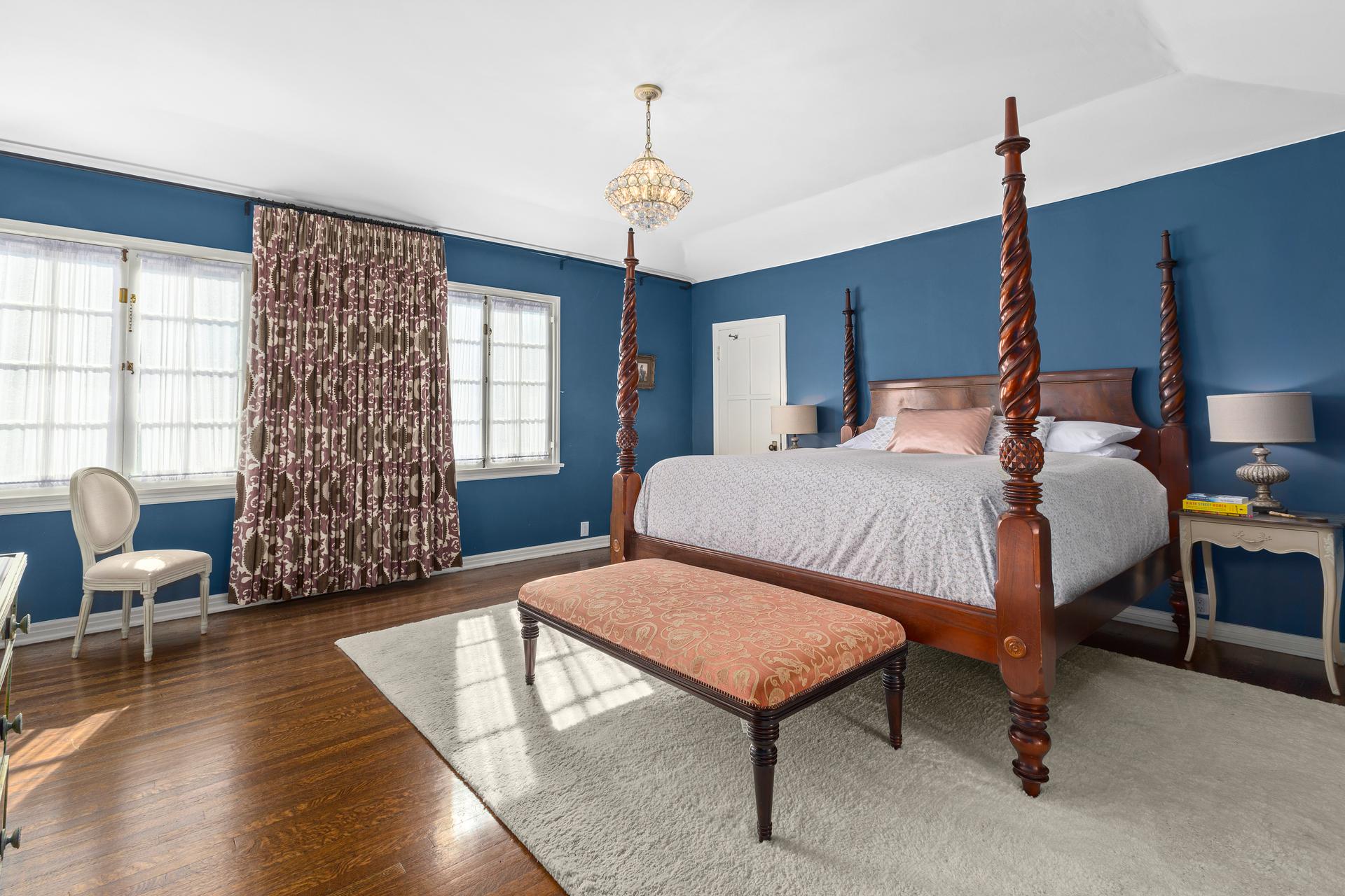 This exquisitely restored Spanish residence sits on a prime tree-lined street in Hancock Park, blending timeless 1920s architecture with refined modern touches. The home offers four bedrooms and three bathrooms in the main house, plus a separate one-bedroom, one-bathroom guest house, spanning over approximately 3,500 square feet. Inside, classic details abound, from arched passageways and richly hued hardwood floors to exposed wood beams and handcrafted tilework along the grand staircase. A gracious living room centers around a fireplace framed by original casement windows, while the chef’s kitchen opens to a sunlit family room for effortless flow. French doors lead to a private, lushly landscaped patio, a peaceful retreat perfect for relaxing or entertaining.