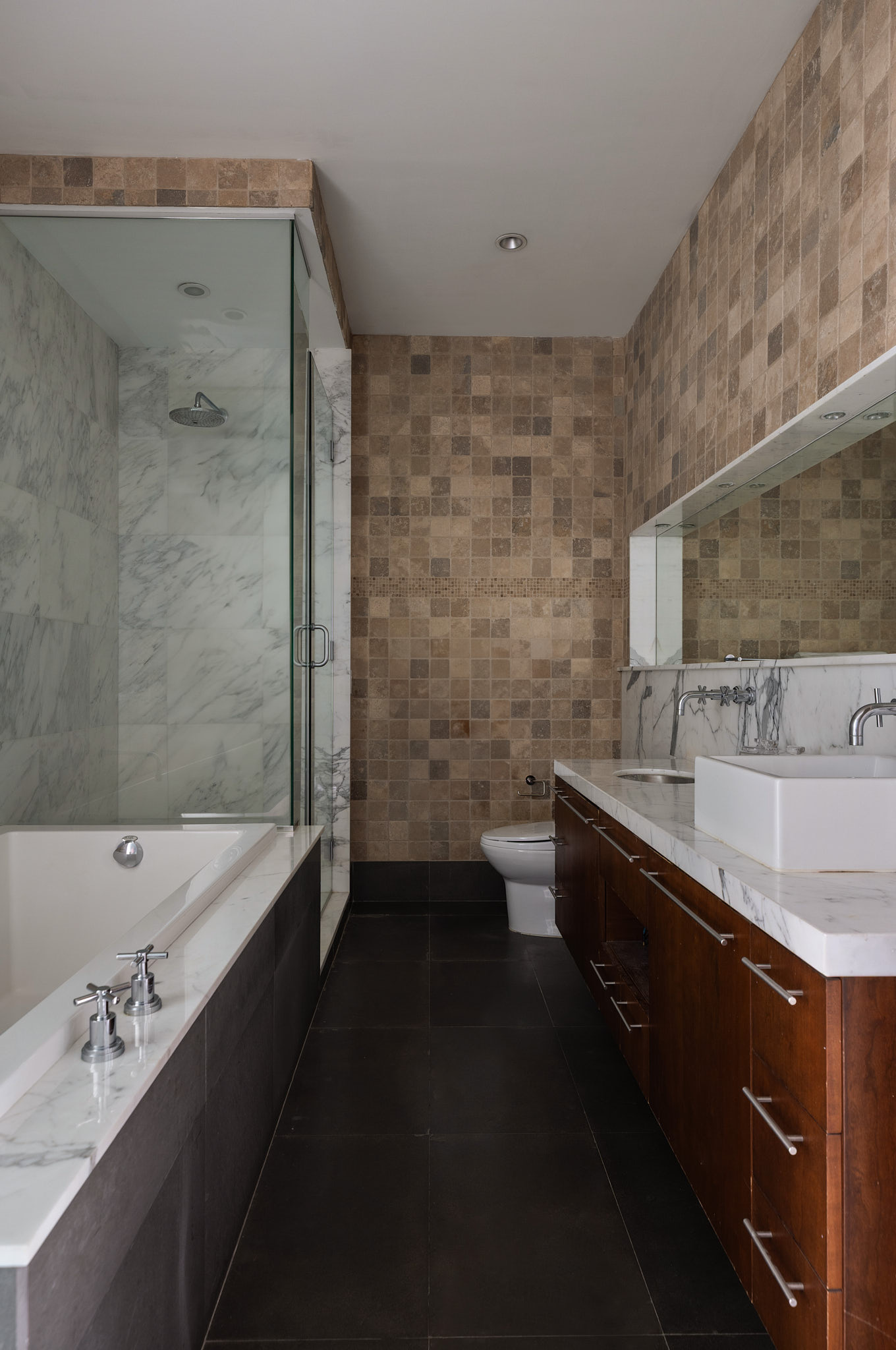 The split-bedroom layout is ideal for privacy, with both bedrooms generously sized to accommodate king beds. The primary suite boasts a luxurious five-fixture bath with a glass-enclosed shower, six-foot Zuma soaking tub, and double vanity. Throughout the home, high beamed ceilings, beautiful Australian Jarra floors, ample closet space, and an in-unit washer/dryer enhance comfort. This well-run, pet-friendly condo offers exceptional amenities including a full-time doorman, live-in superintendent, bike room, private storage, playroom, and a common roof deck. Perfectly positioned near the Marcy JMZ subway stop and ferry, 8K delivers both convenience and elevated loft living in the heart of Williamsburg.