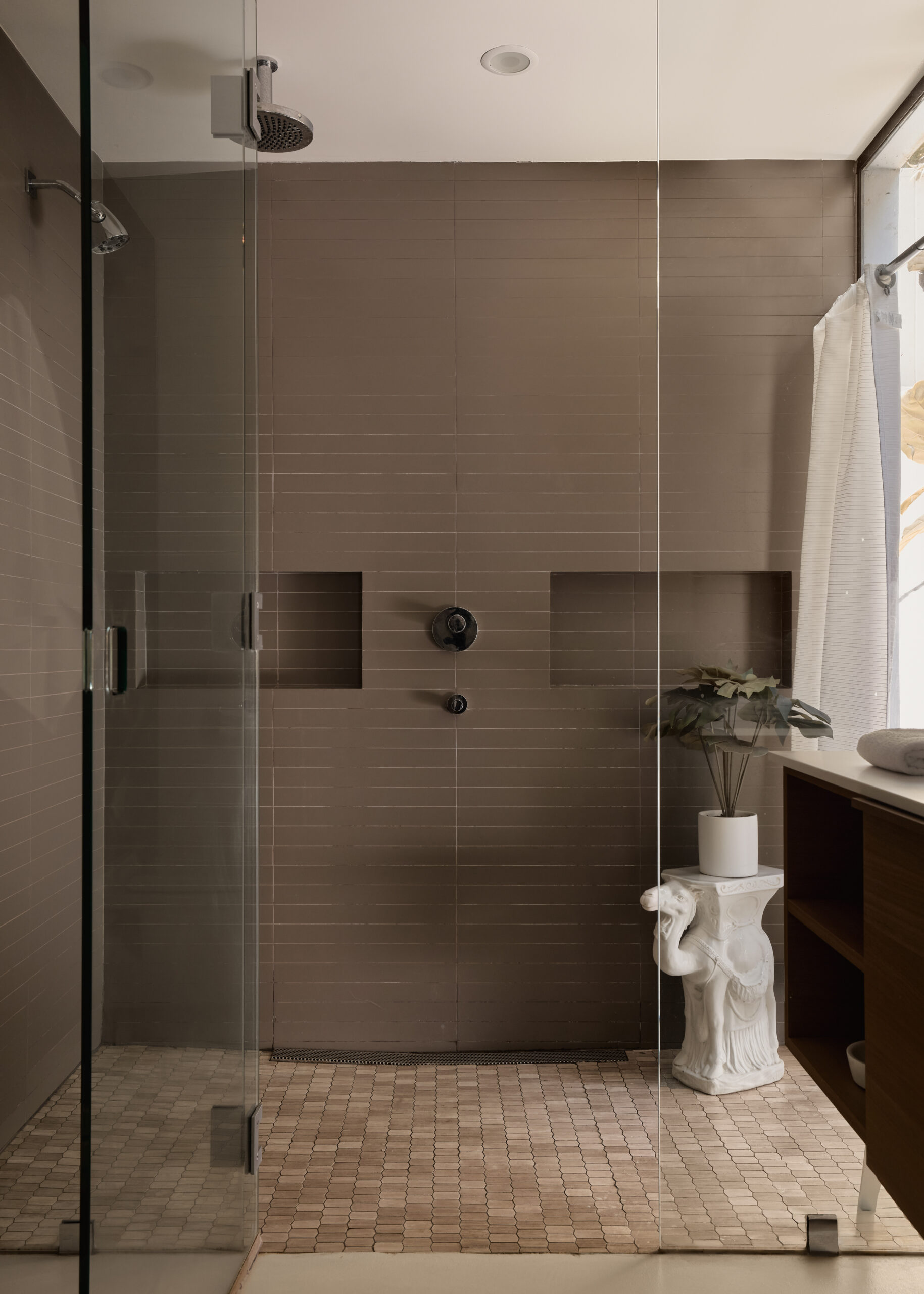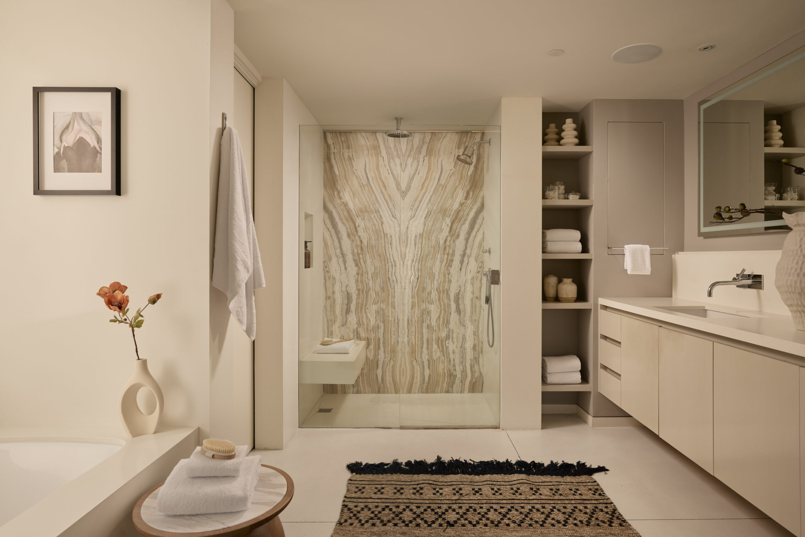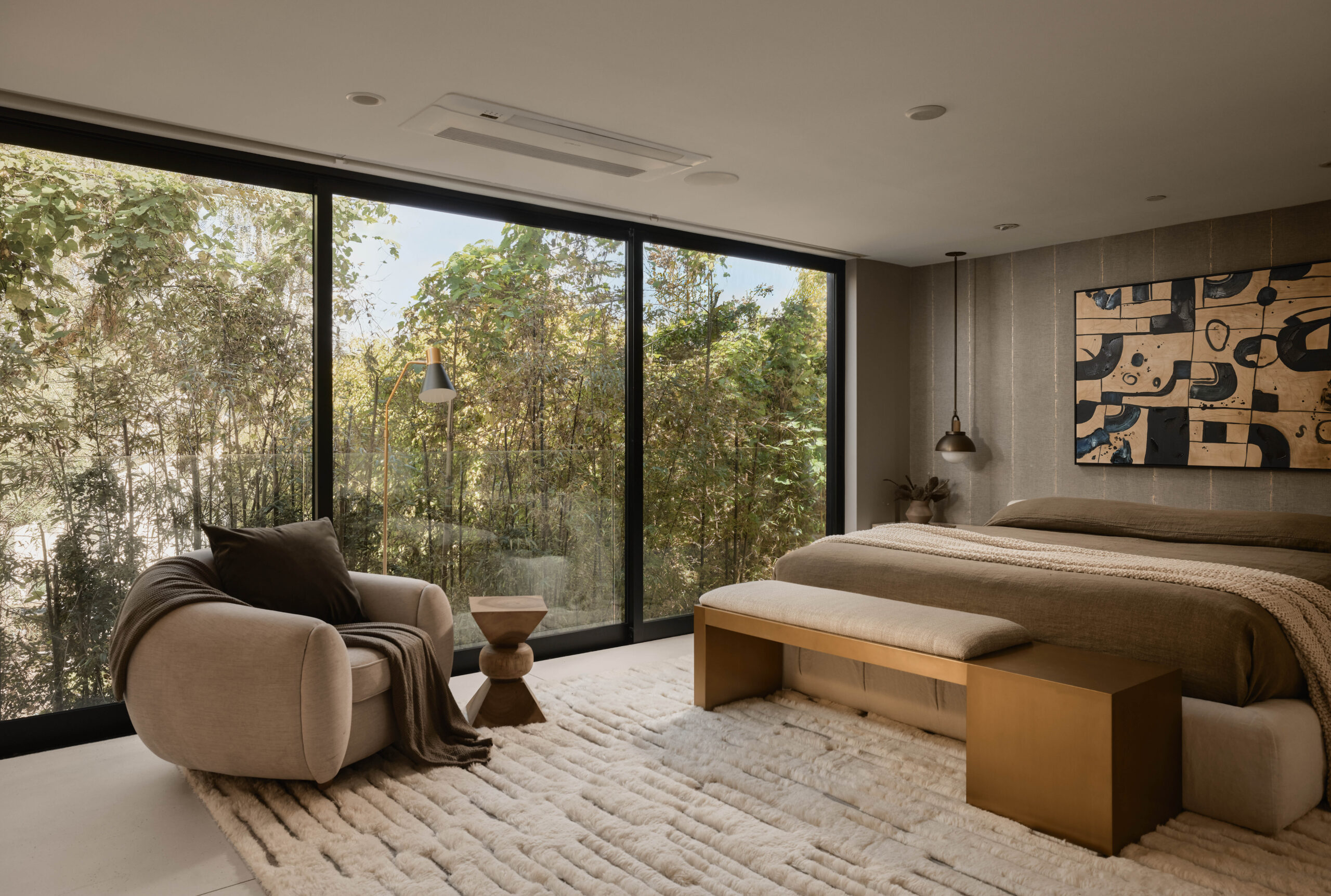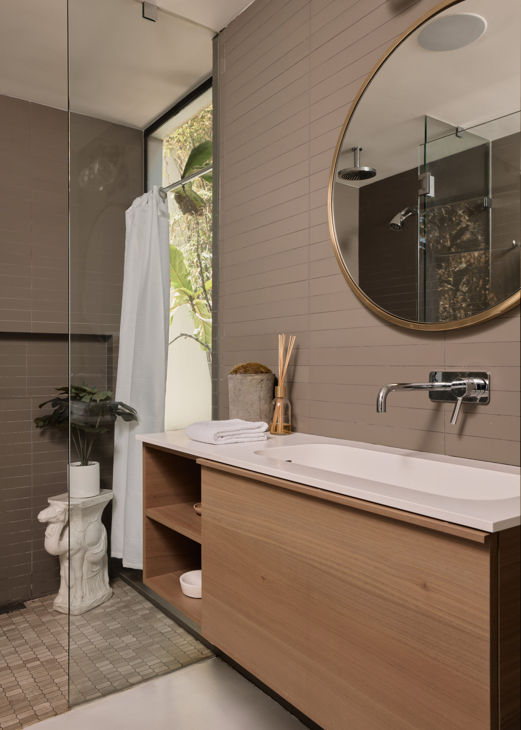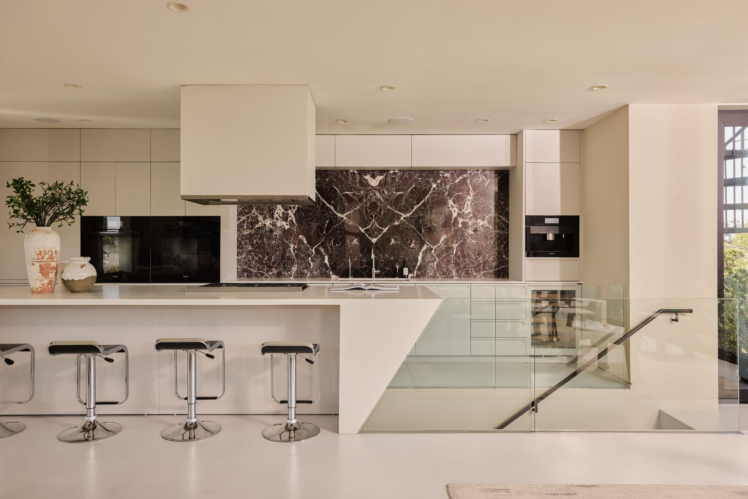 Ultra-sophisticated, this modern Venice residence showcases walls of glass, expansive living spaces, and a private rooftop deck capturing sweeping views. Spanning nearly 3,000 square feet, the three-bedroom, four-bath home offers a refined coastal lifestyle just moments from the boutiques and dining of Abbot Kinney and the beach. The main level unfolds as a bright, open-concept floor plan where floor-to-ceiling windows flood the interiors with natural light and create a seamless indoor-outdoor feel. Anchoring the dining area, a double-sided fireplace adds architectural presence, while the adjacent chef's kitchen features a sculptural island, integrated appliances, and a marble backsplash. The primary suite is a serene retreat, highlighted by a wall of glass overlooking lush greenery and a spa-like bath with a glass-enclosed shower, soaking tub, and dual-sink vanity. Designed for both elevated entertaining and relaxed everyday living, the expansive rooftop deck offers a true outdoor oasis with a built-in BBQ, lounge seating, dining area, and fire pit, perfect for hosting or enjoying intimate evenings with sweeping vistas. Thoughtfully designed throughout, this residence delivers both style and function in one of the Westside's most coveted locations.