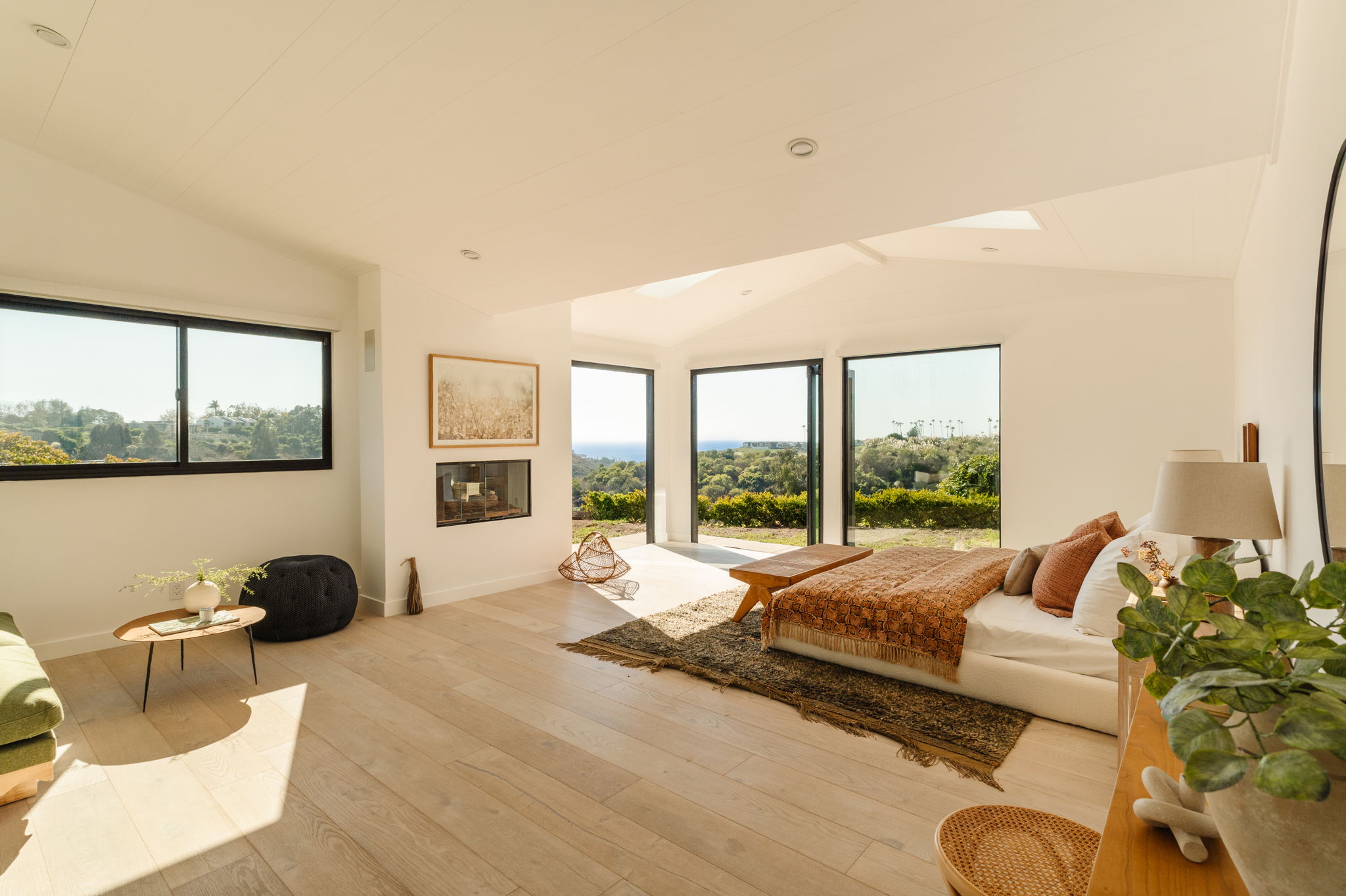 At the heart of the home lies a stunning great room with soaring ceilings, skylights, and walls of glass that open to the sweeping vistas and outdoor patio. The seamless open floor plan flows effortlessly between living, dining, and lounge spaces. The sleek modern kitchen showcases white cabinetry, stainless steel appliances, floating shelves, and a large eat-in island. Unwind in the spacious primary suite featuring a vaulted ceiling, fireplace, sliding glass doors framing the ocean, a walk-in closet, and a spa-like bath. Thoughtfully appointed guest rooms, a bonus living area, a two-car garage with a Tesla charger, an indoor-outdoor sound system, and lush landscaping complete this rare retreat. A true Malibu sanctuary, the property blends modern design with tranquility and coveted coastal living - secluded yet just moments from local shopping, dining, and Malibu’s world-famous beaches.