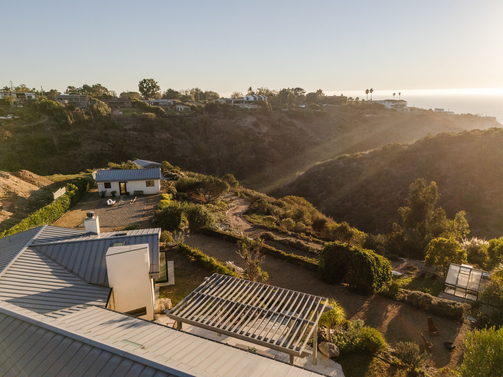 Perched above Zuma Beach at the end of a serene cul-de-sac, 6767 Wandermere Road is a thoughtfully reimagined contemporary Malibu compound offering privacy, scale, and breathtaking ocean views. Spanning just under three acres, this celebrity-caliber estate is fully gated and comprises four separate structures, including a main residence, a greenhouse, and two guest houses - ideal for guests or creative workspaces. The property features grand expanses of flat and terraced landscaping, boasting a pergola-shaded flagstone patio with a fireplace, rock-walled planter beds, and multiple ocean-view sitting areas. There are endless opportunities to further enhance the grounds with a pool, bocce court, or additional decks for entertaining and outdoor living.